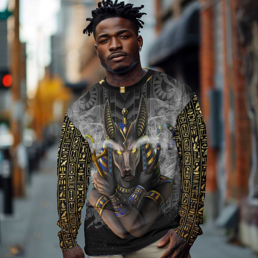 Anubis Long Sleeve Shirt Egypt Pattern Black