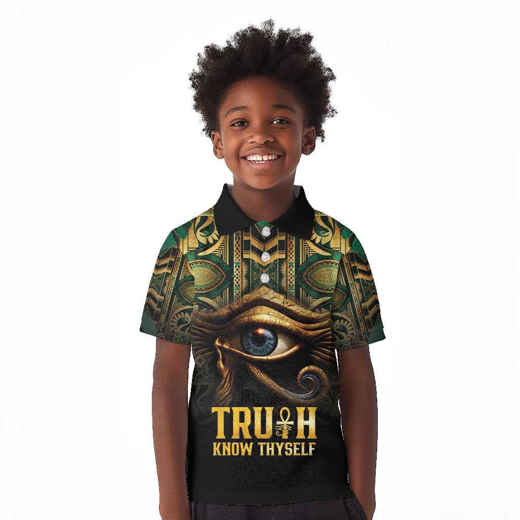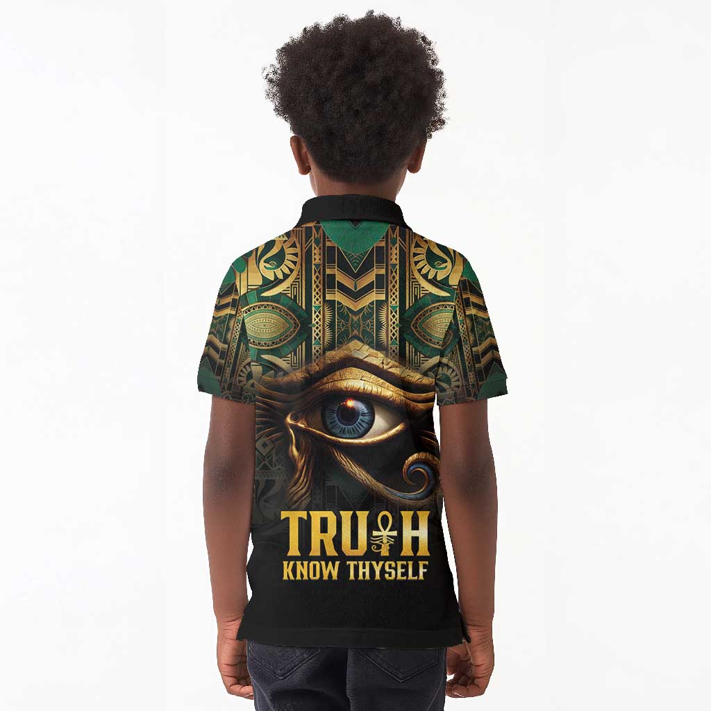 Egypt Eye of Horus Kid Polo Shirt Golden Ancient Egypt Pattern