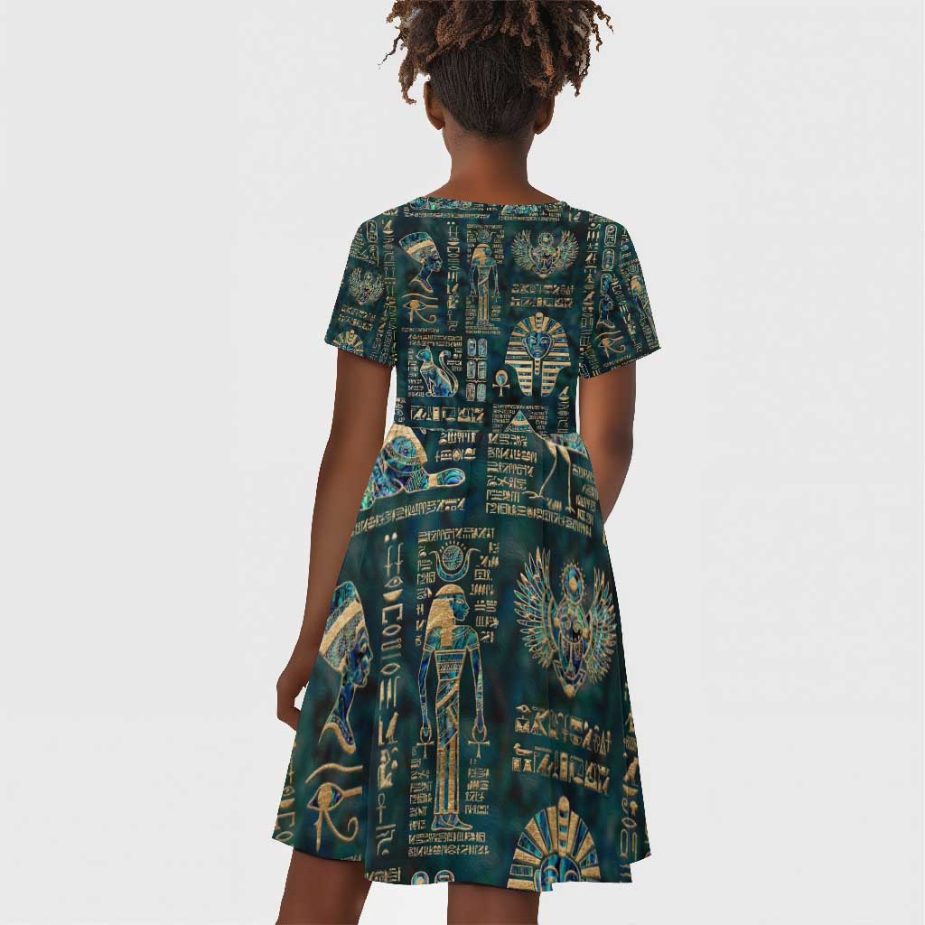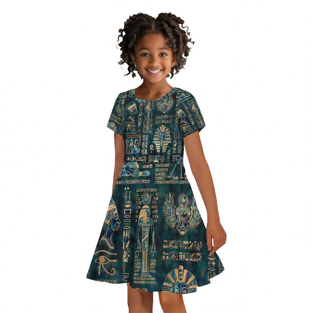 Egyptian Hieroglyphs And Deities Kid Short Sleeve Dress