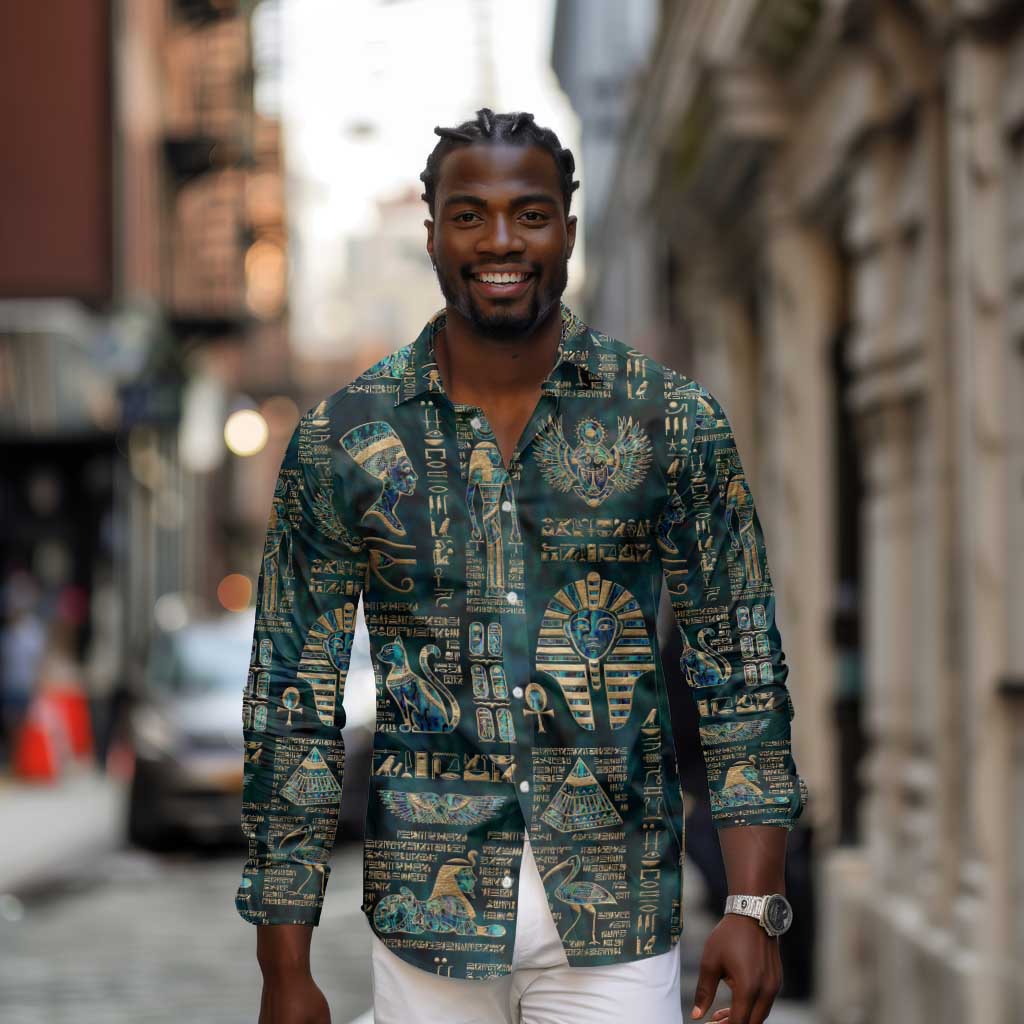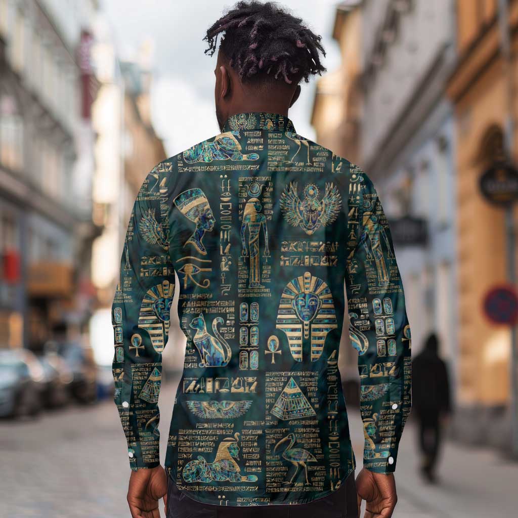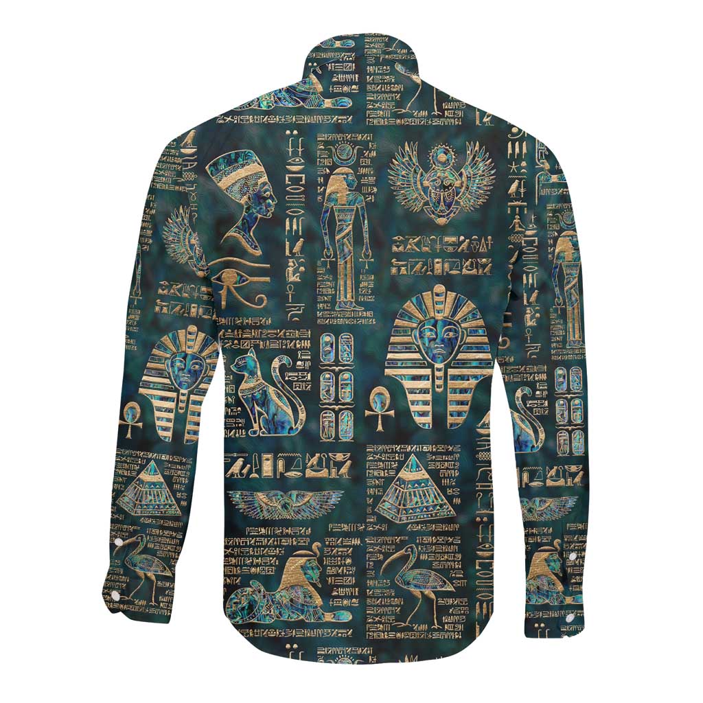 Egyptian Hieroglyphs And Deities Long Sleeve Button Shirt