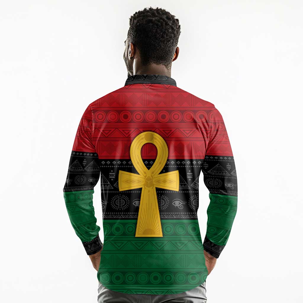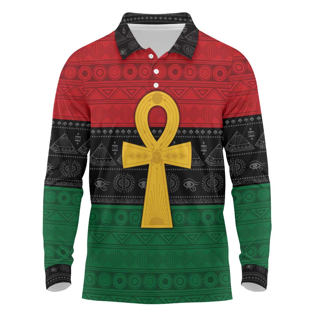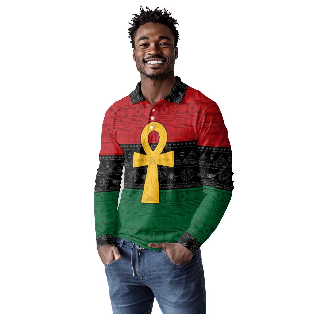Pan African Ankh Long Sleeve Polo Shirt Egyptian Cross