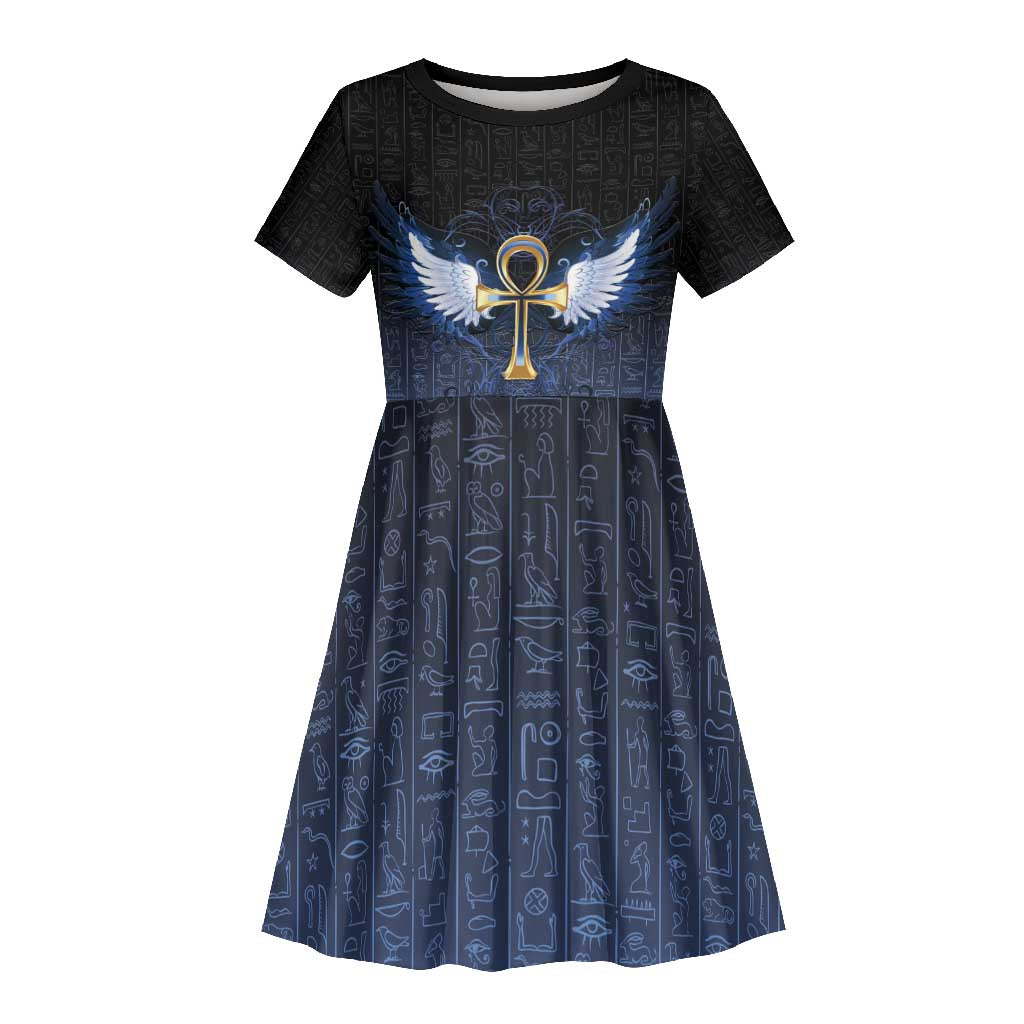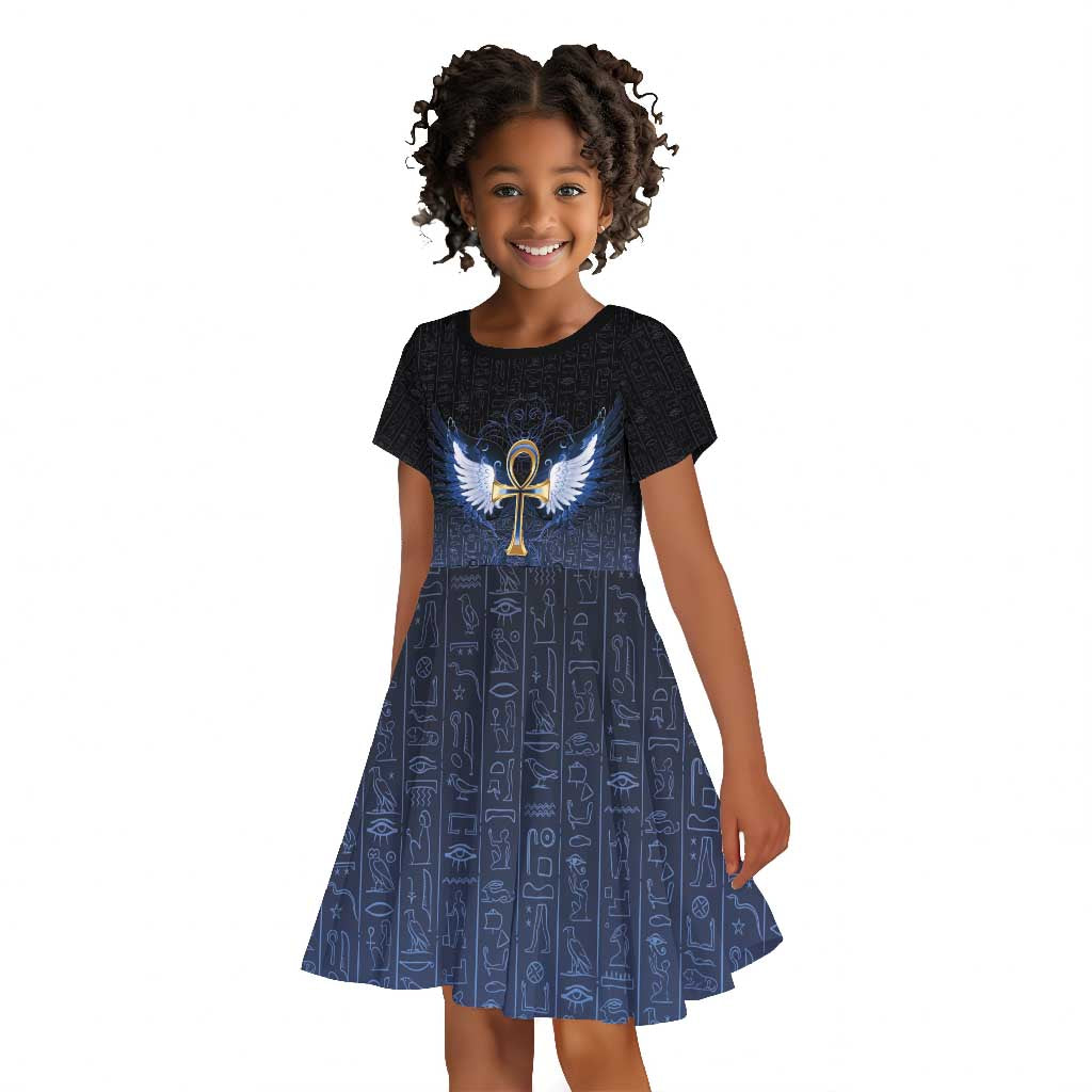 Personalised Egyptian Ankh Kid Short Sleeve Dress Egypt Hieroglyphs Pattern