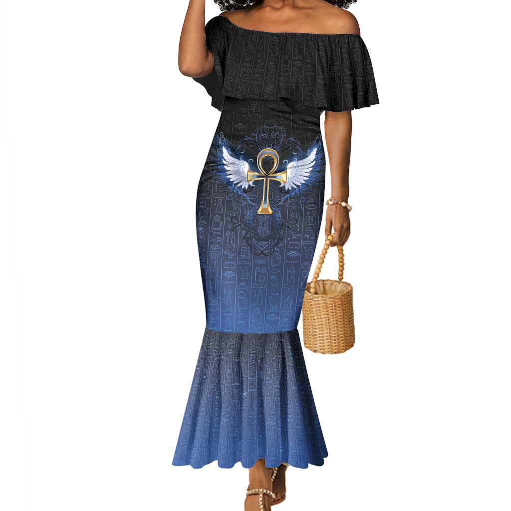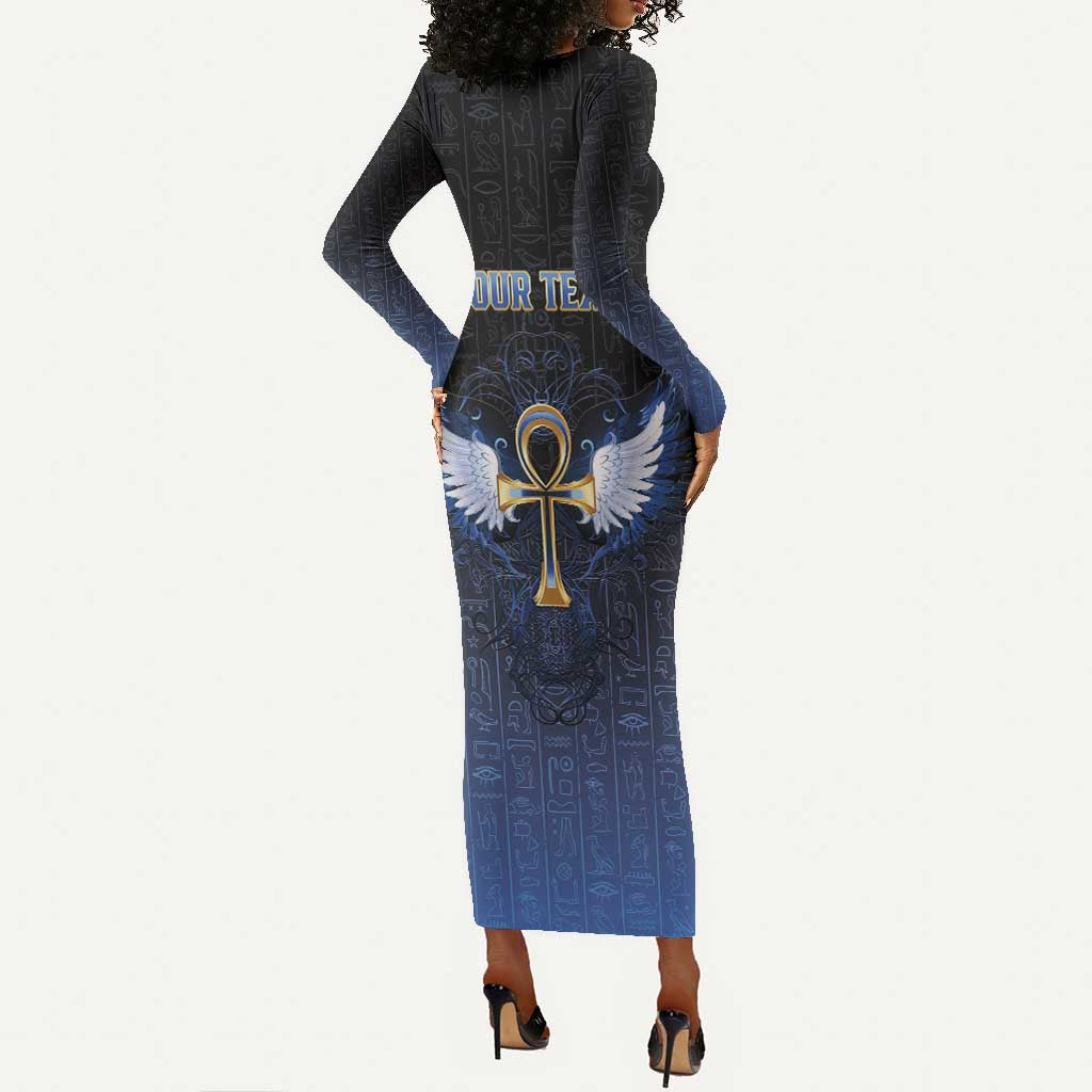 Personalised Egyptian Ankh Long Sleeve Bodycon Dress Egypt Hieroglyphs Pattern