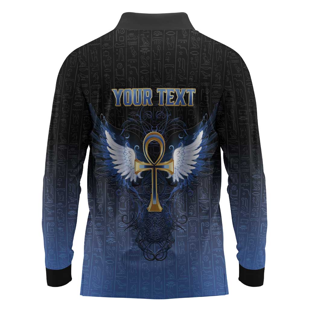 Personalised Egyptian Ankh Long Sleeve Polo Shirt Egypt Hieroglyphs Pattern