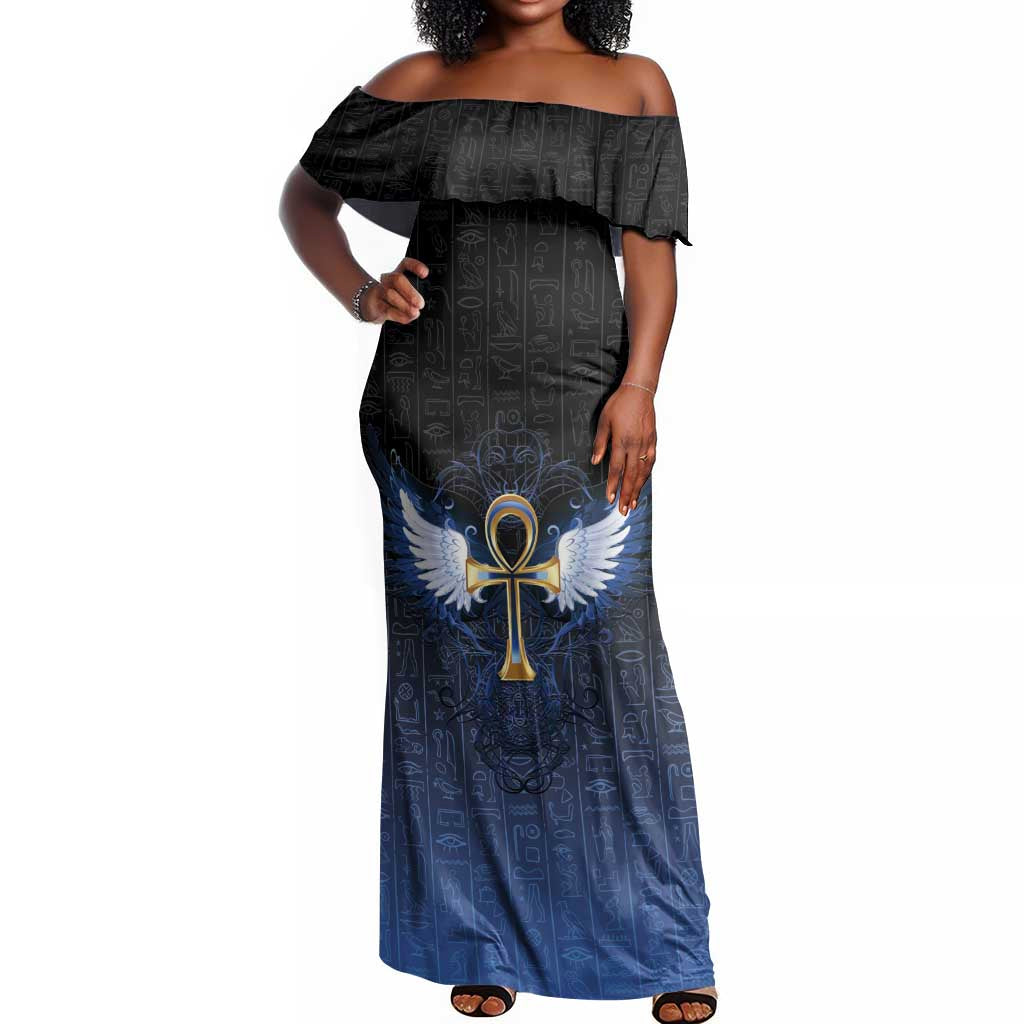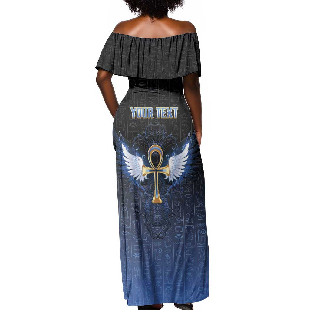 Personalised Egyptian Ankh Off Shoulder Maxi Dress Egypt Hieroglyphs Pattern