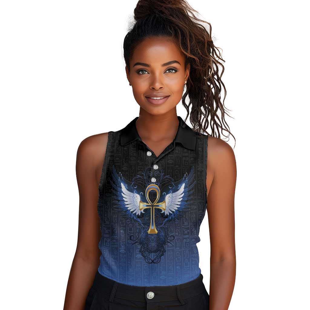Personalised Egyptian Ankh Women Sleeveless Polo Shirt Egypt Hieroglyphs Pattern