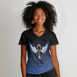 Personalised Egyptian Ankh Women V-Neck T-Shirt Egypt Hieroglyphs Pattern