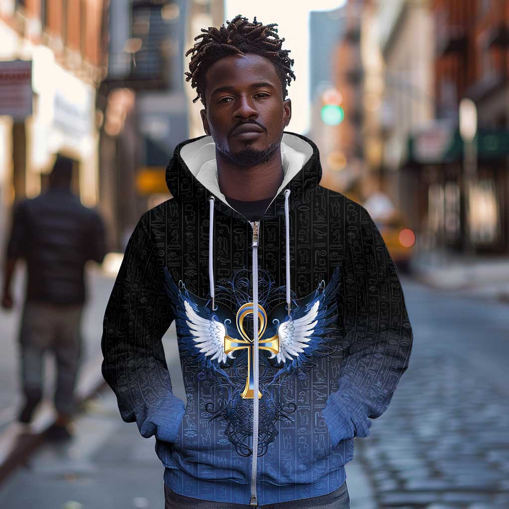 Personalised Egyptian Ankh Zip Hoodie Egypt Hieroglyphs Pattern