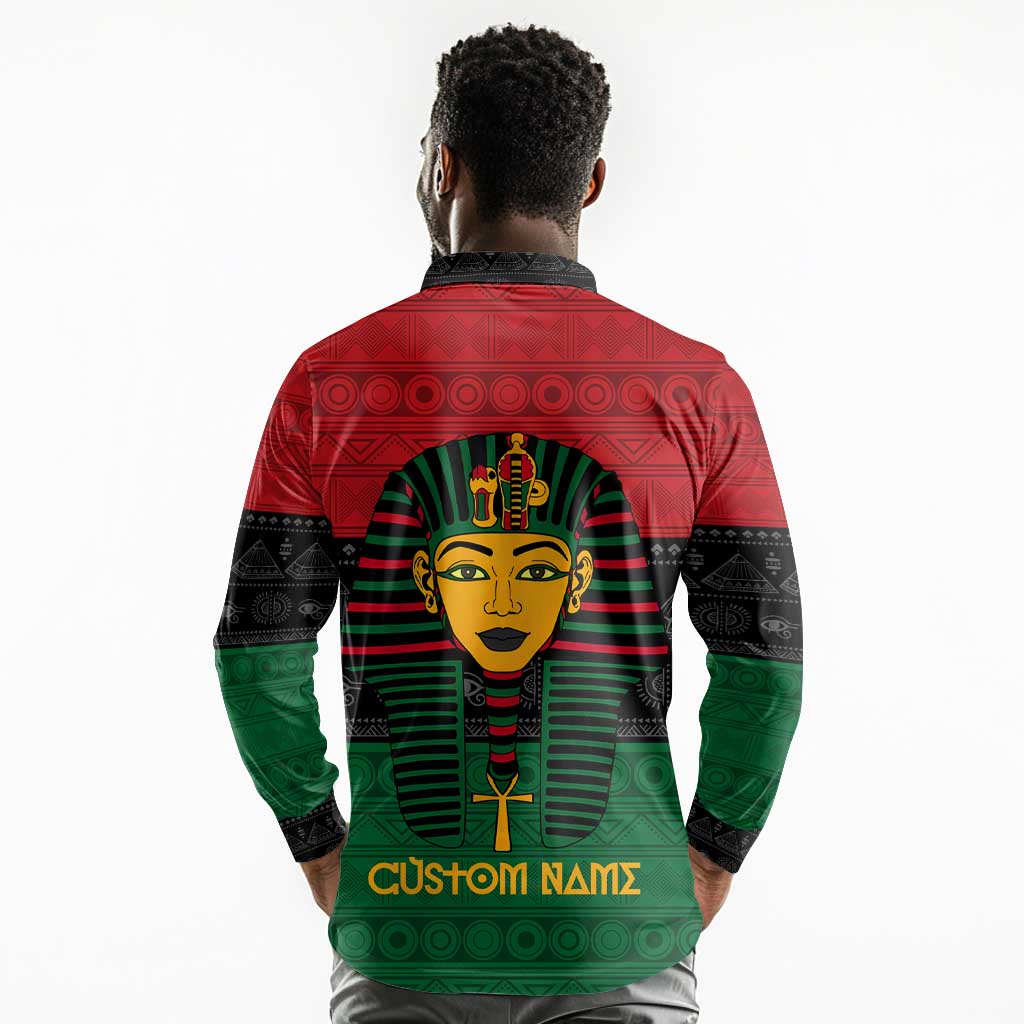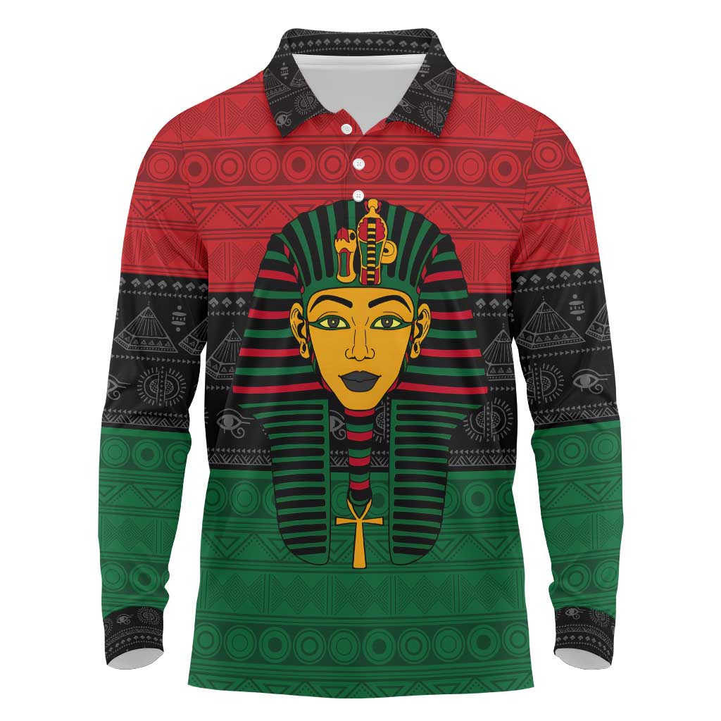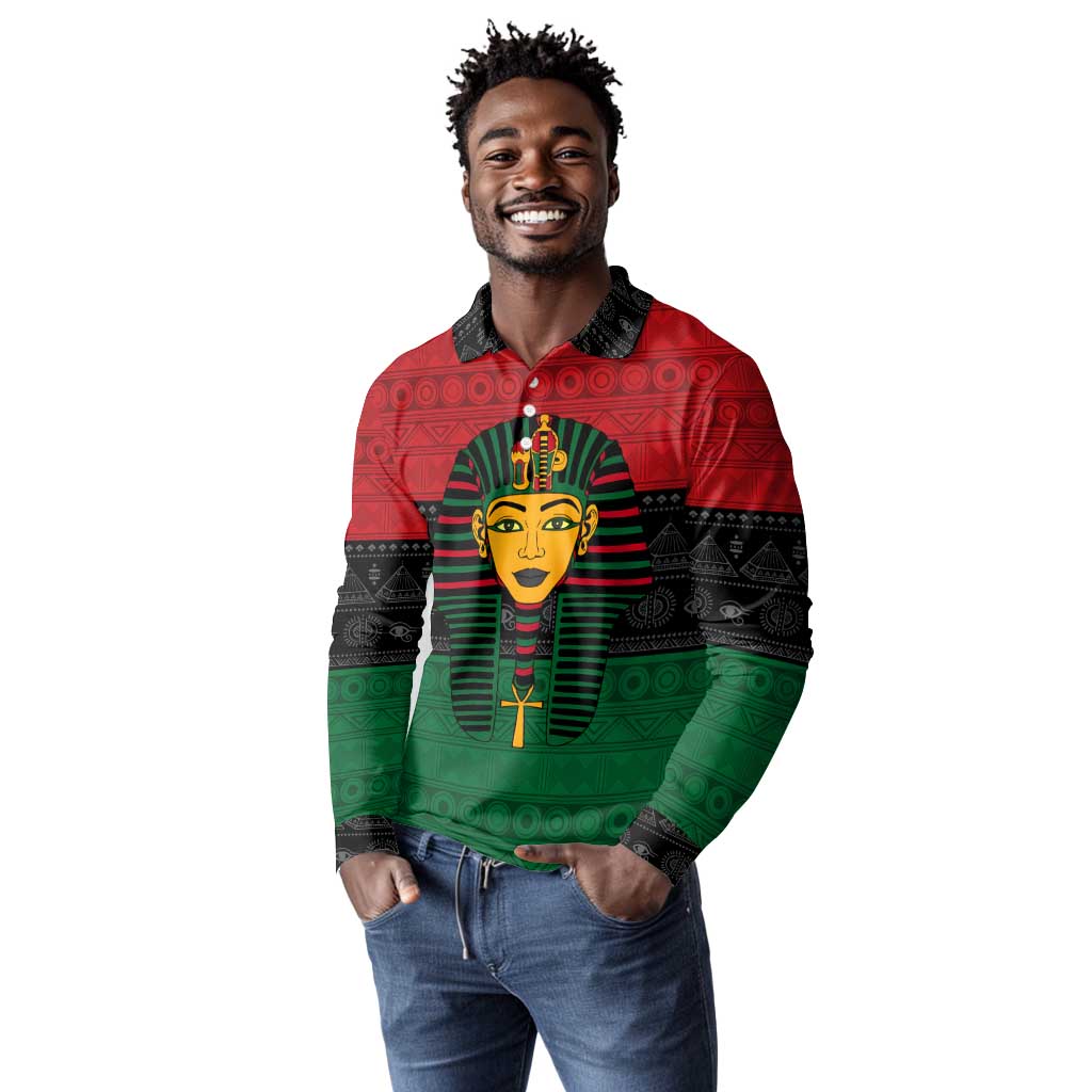 Personalized Ancient Egypt Long Sleeve Polo Shirt - Pharaoh in Pan-African Colors