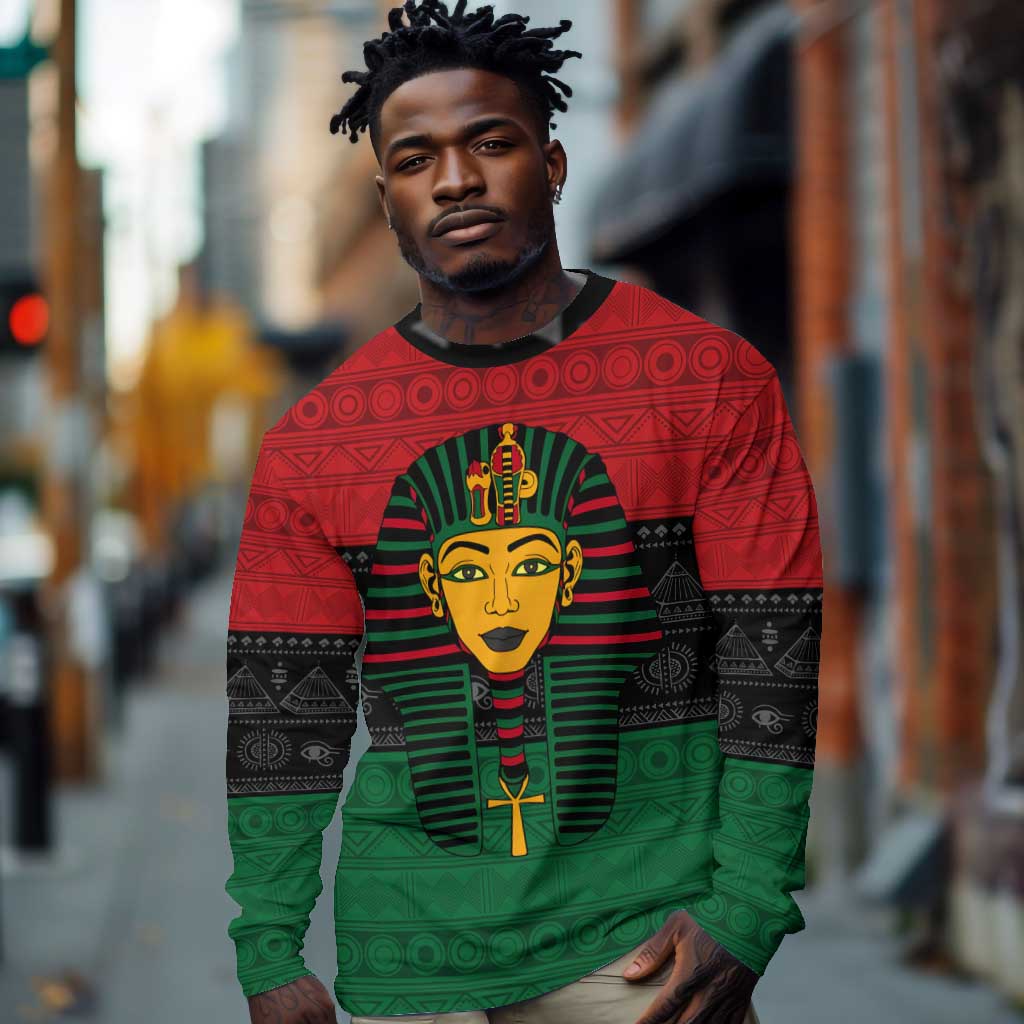 Personalized Ancient Egypt Long Sleeve Shirt - Pharaoh in Pan-African Colors