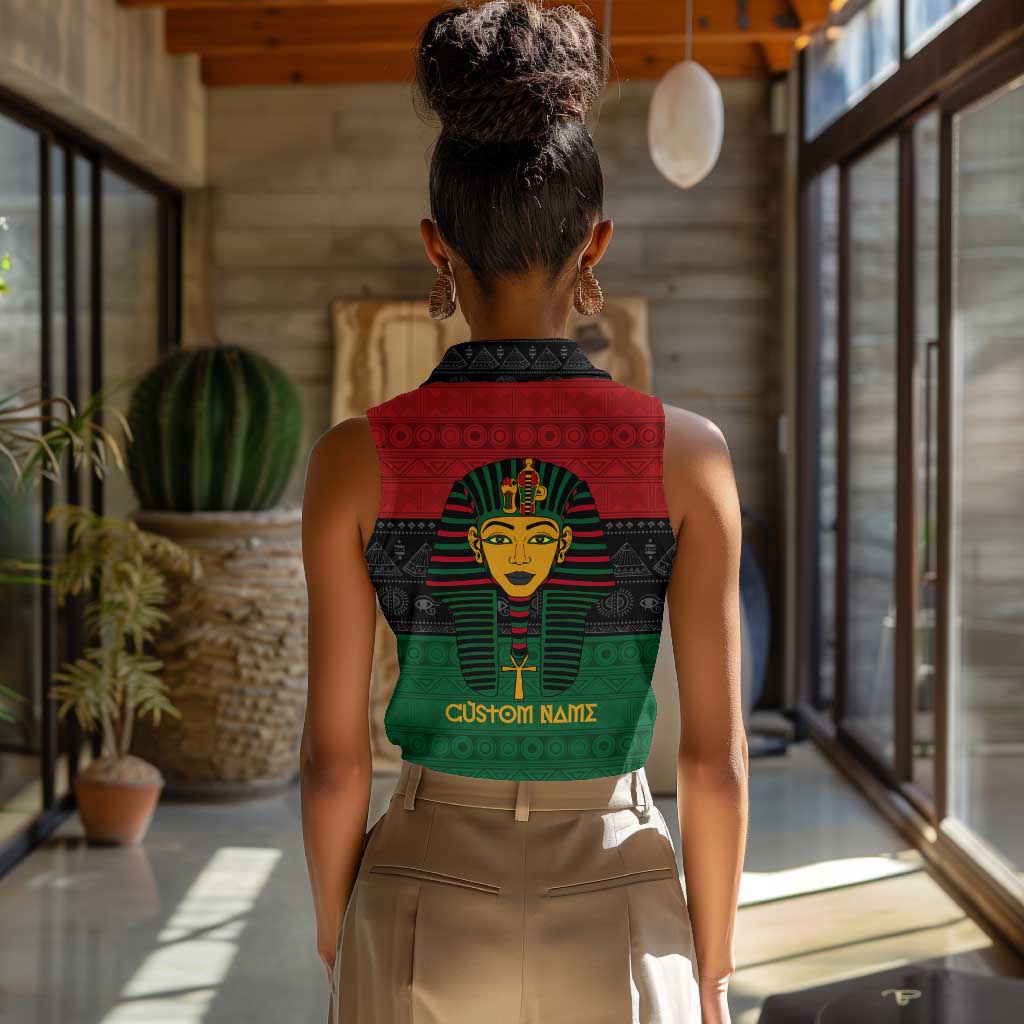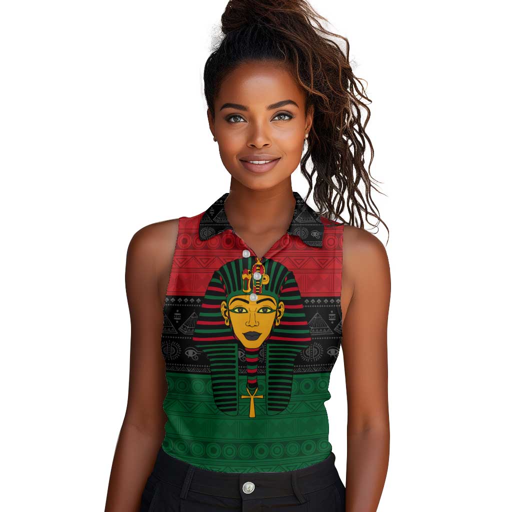 Personalized Ancient Egypt Women Sleeveless Polo Shirt - Pharaoh in Pan-African Colors