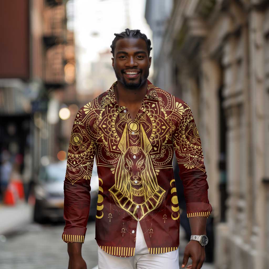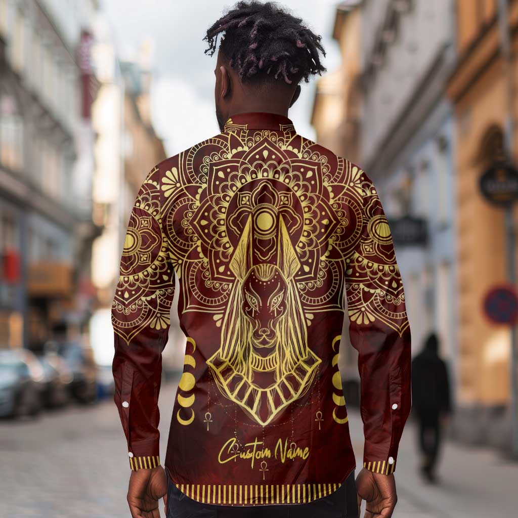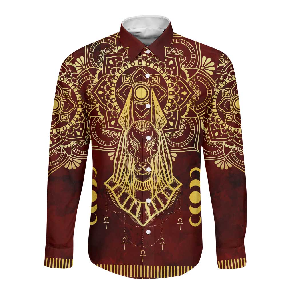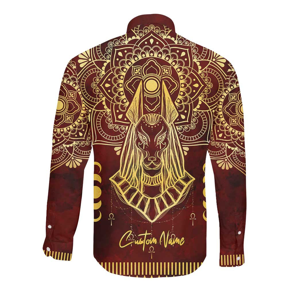 Personalized Anubis Long Sleeve Button Shirt Ancient Egyptian Pattern In Red