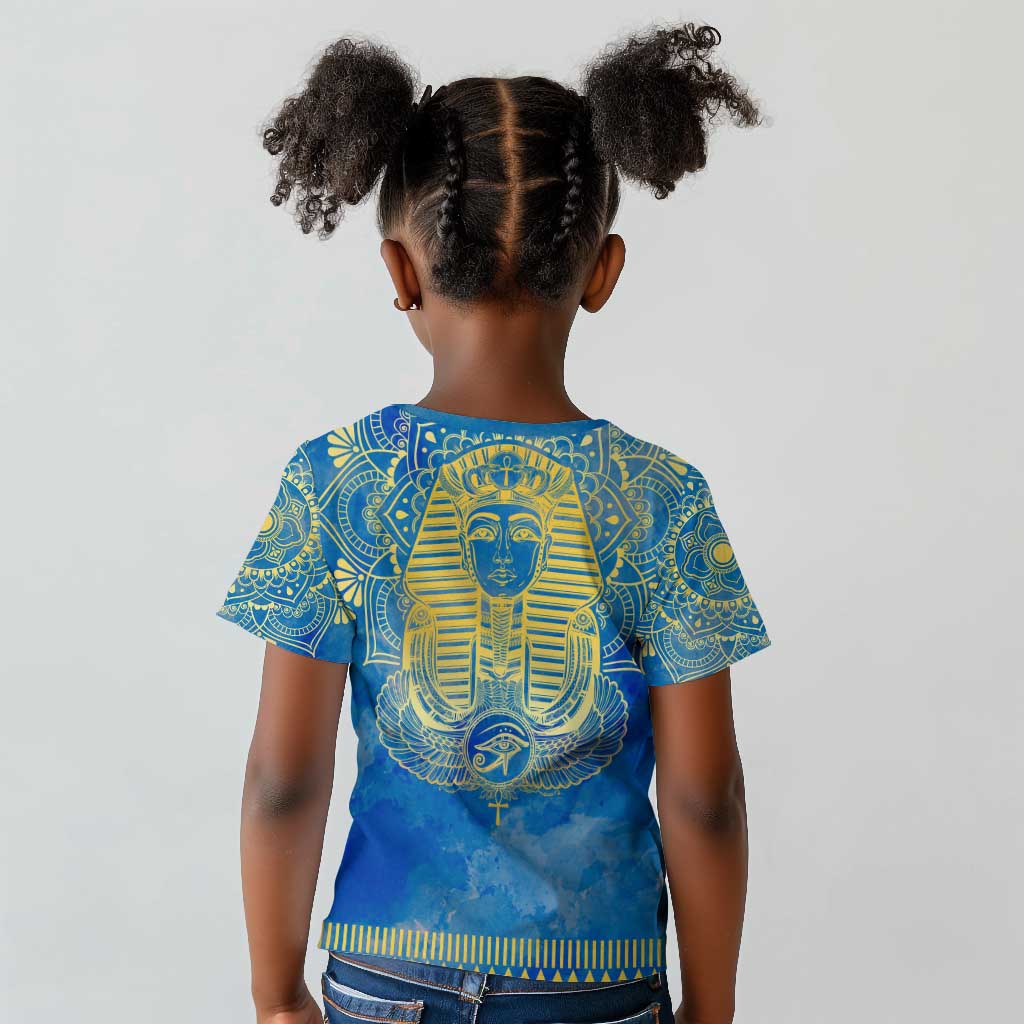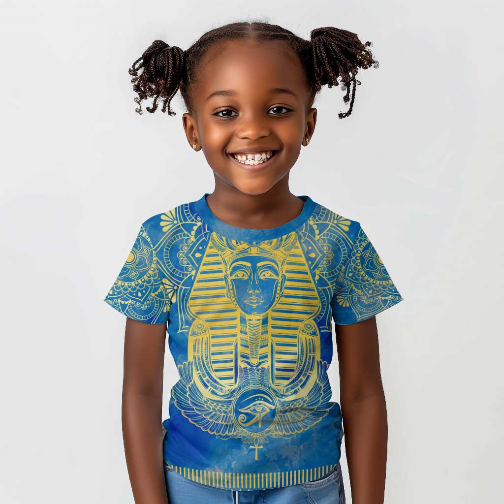 Personalized Egyptian Pharaoh Kid T shirt with Mandala and Eye of Horus in Blue