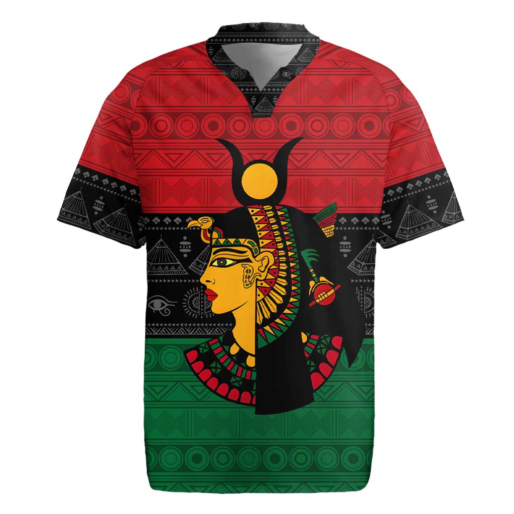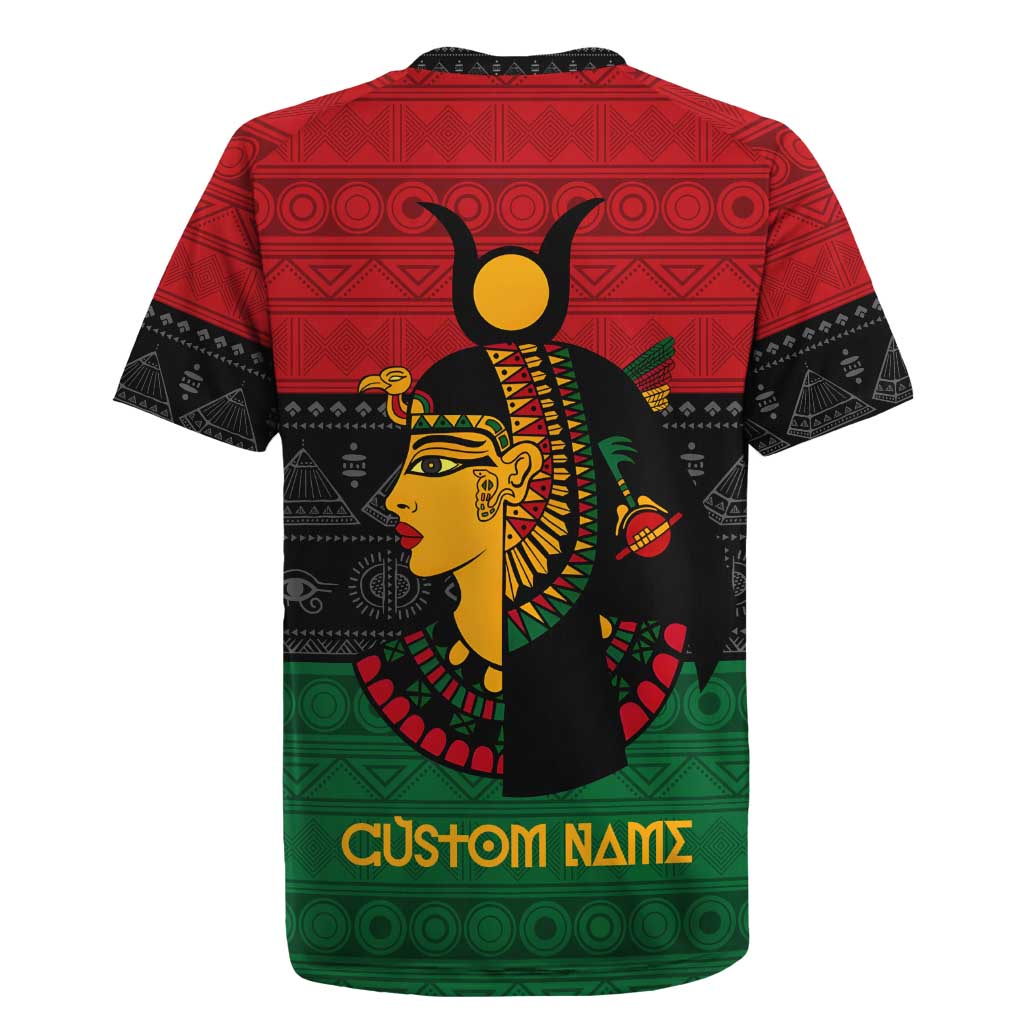 Personalized Queen of Egypt Rugby Jersey in Pan-African Colors