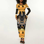 Afro Ancient Egyptian Long Sleeve Bodycon Dress Anubis - Merry Christmas