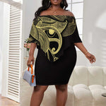 Afro Egypt Off Shoulder Short Dress Horus Eyes Egyptian God