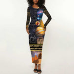 Afro Egyptian Pyramids Long Sleeve Bodycon Dress Ancient African Achievements Galaxy