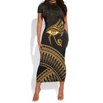 Ancient Egypt Gold Intricate Short Sleeve Bodycon Dress Eye of Horus