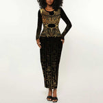 Ancient Egypt Long Sleeve Bodycon Dress Black Gold Scarab