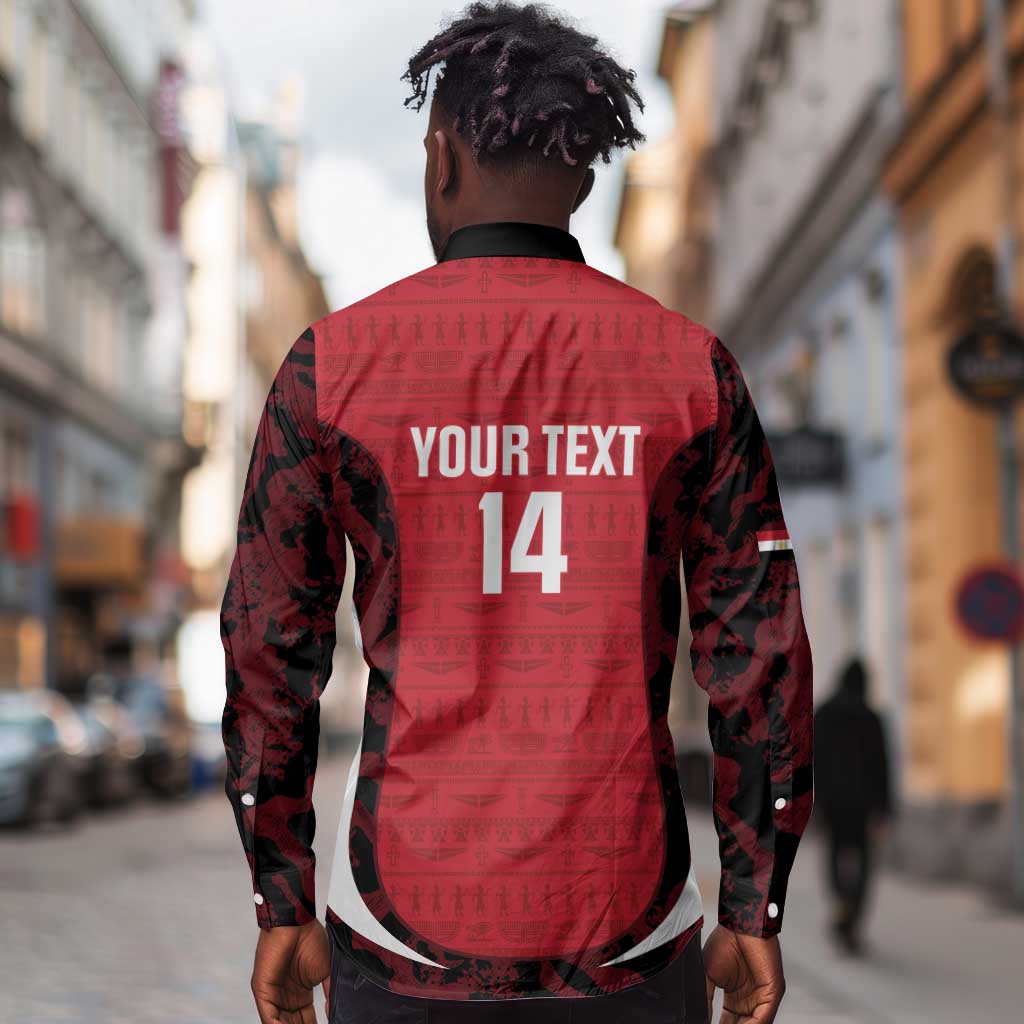 Custom Egypt Football Long Sleeve Button Shirt 2026 Go Pharaohs Ancient Egyptian Pattern