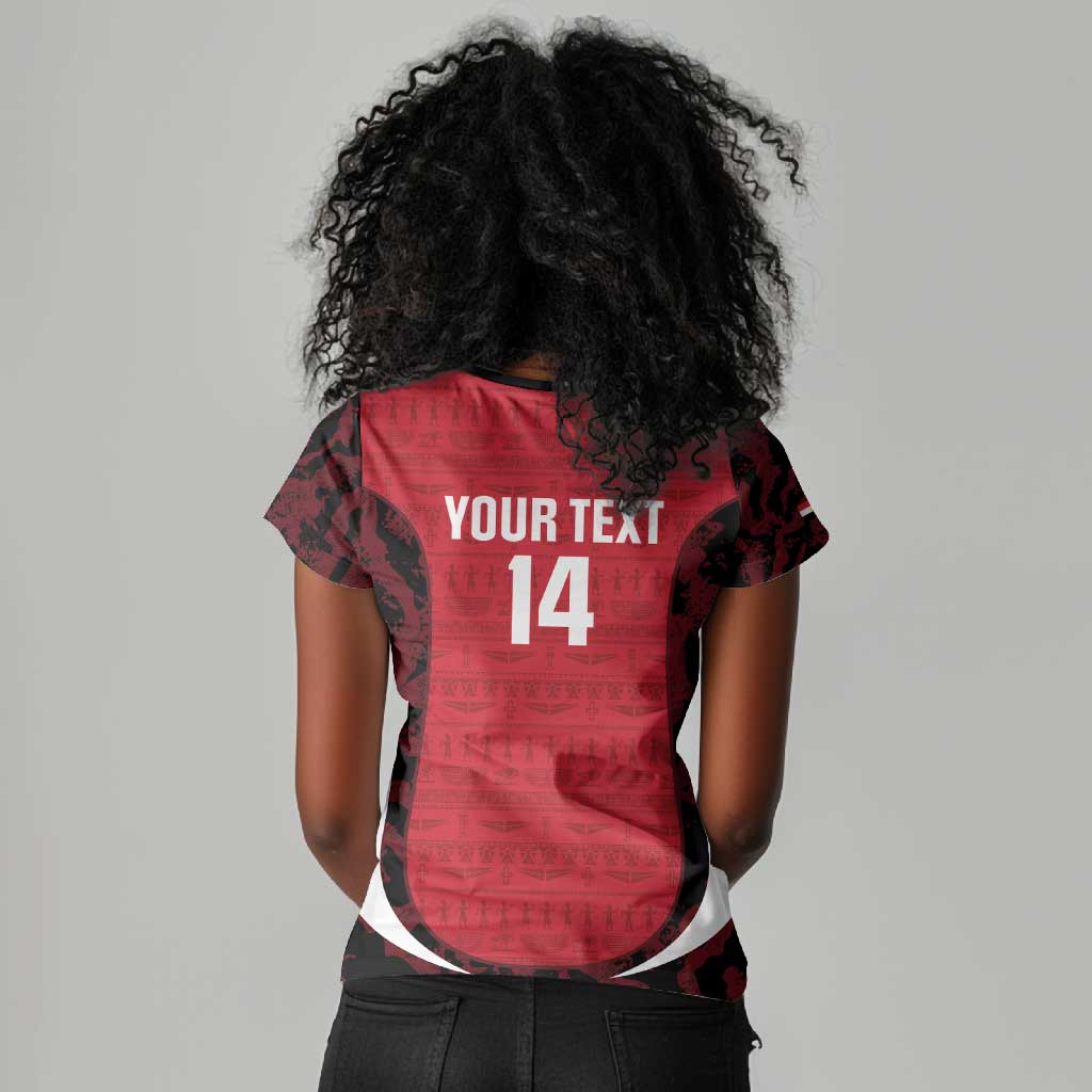 Custom Egypt Football Women V-Neck T-Shirt 2026 Go Pharaohs Ancient Egyptian Pattern