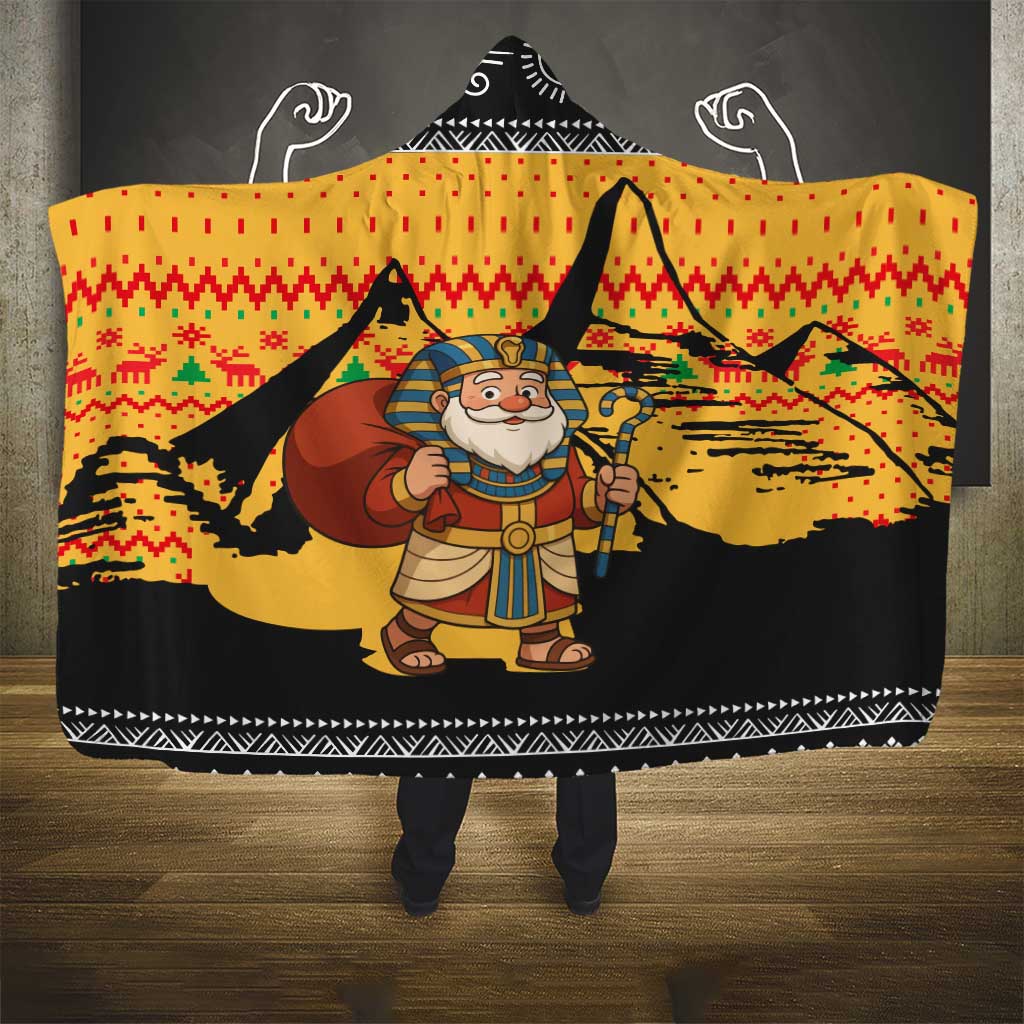 Egypt Christmas Hooded Blanket Pharaoh Santa Pyramids Eye of Horus and Ancient Egyptian