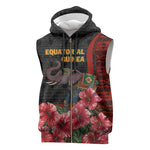 Equatorial Guinea Elephant Sleeveless Zip Hoodie - Hibiscus Flowers and Tribal Patterns