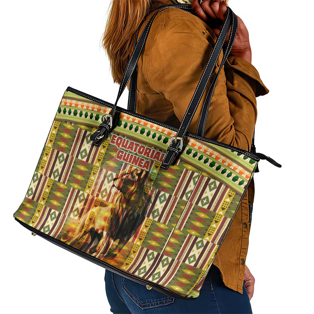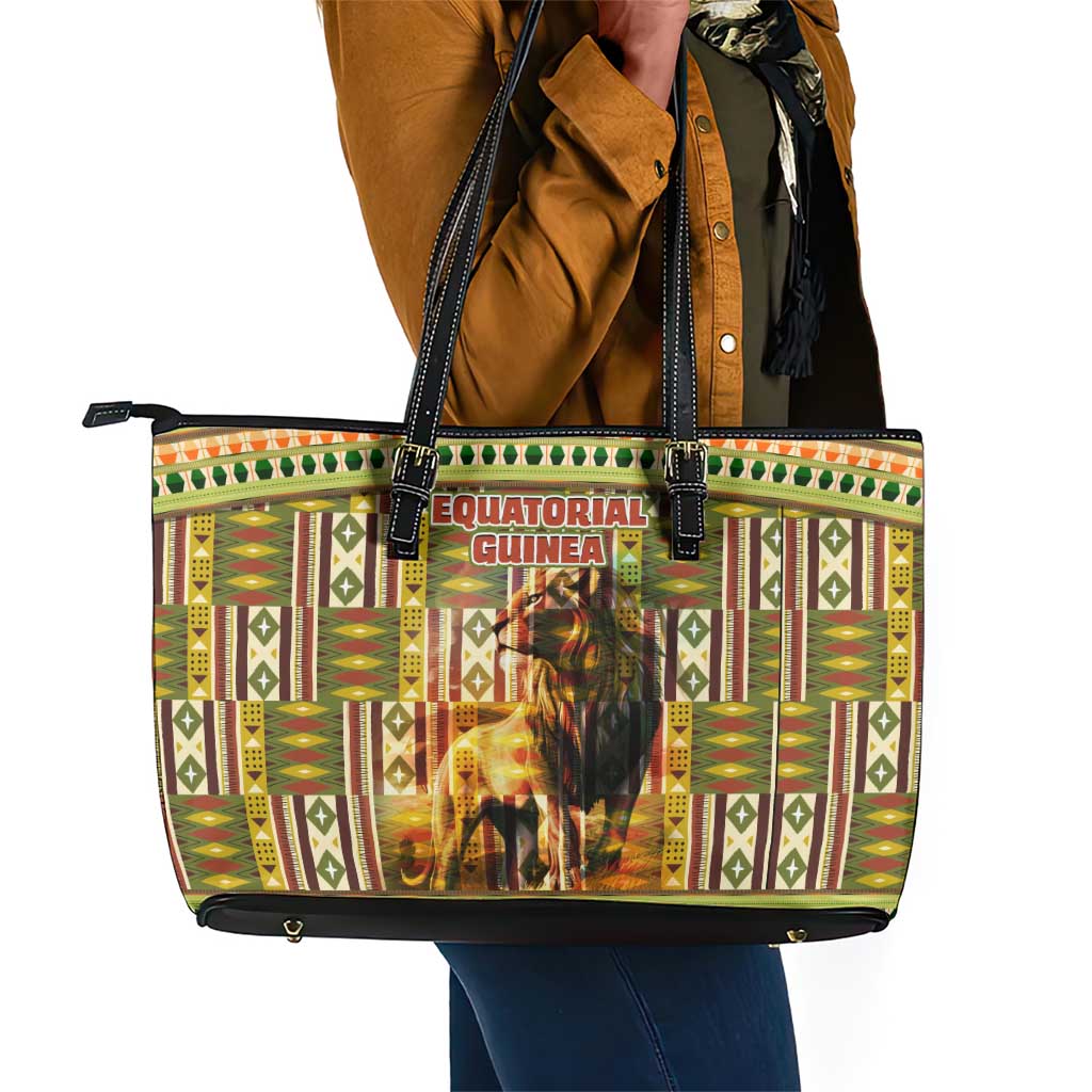 Equatorial Guinea Leather Tote Bag - Lion Print and Traditional African Kente Patterns