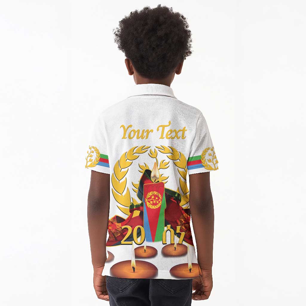 Custom Eritrea Martyrs' Day Kid Polo Shirt 20 June Shida Shoes With Candles - White