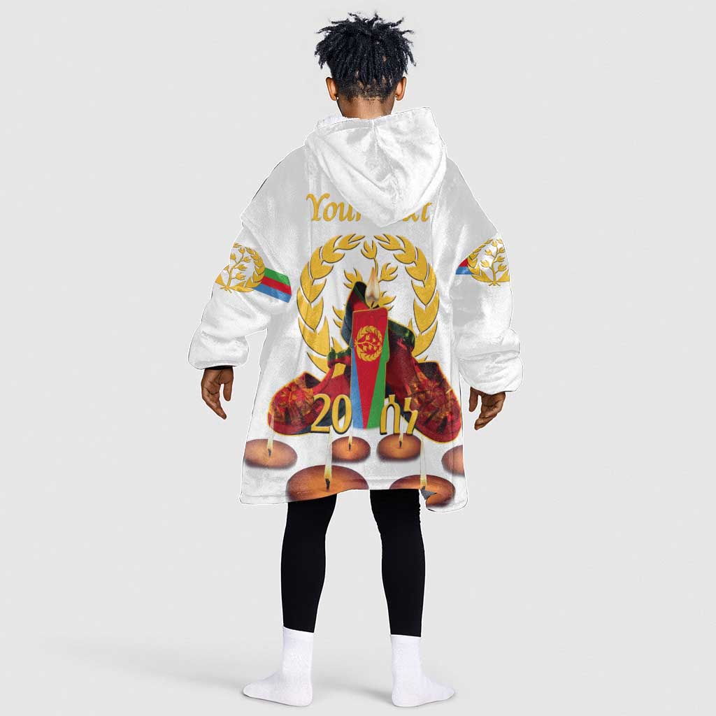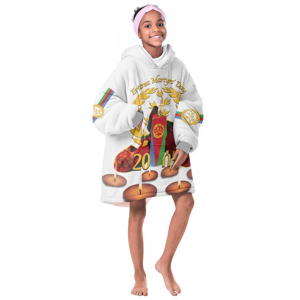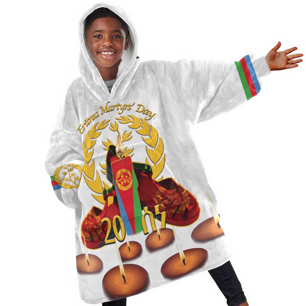 Custom Eritrea Martyrs' Day Kid Wearable Blanket Hoodie 20 June Shida Shoes With Candles - White