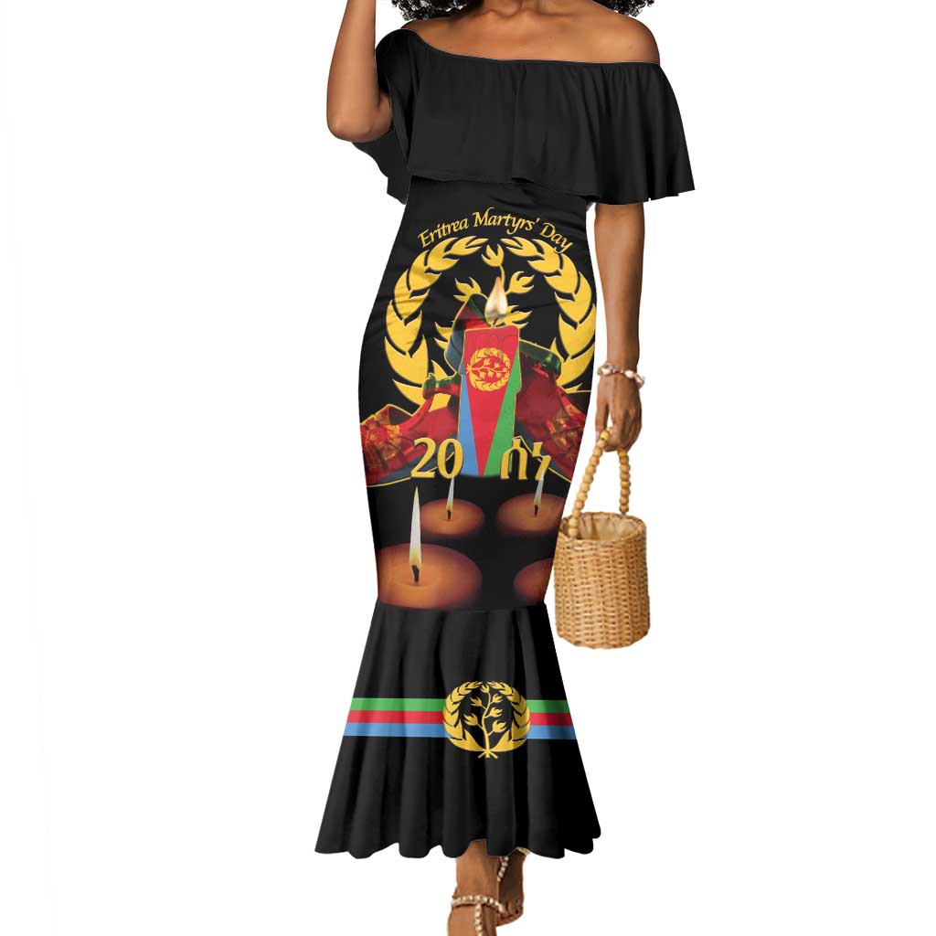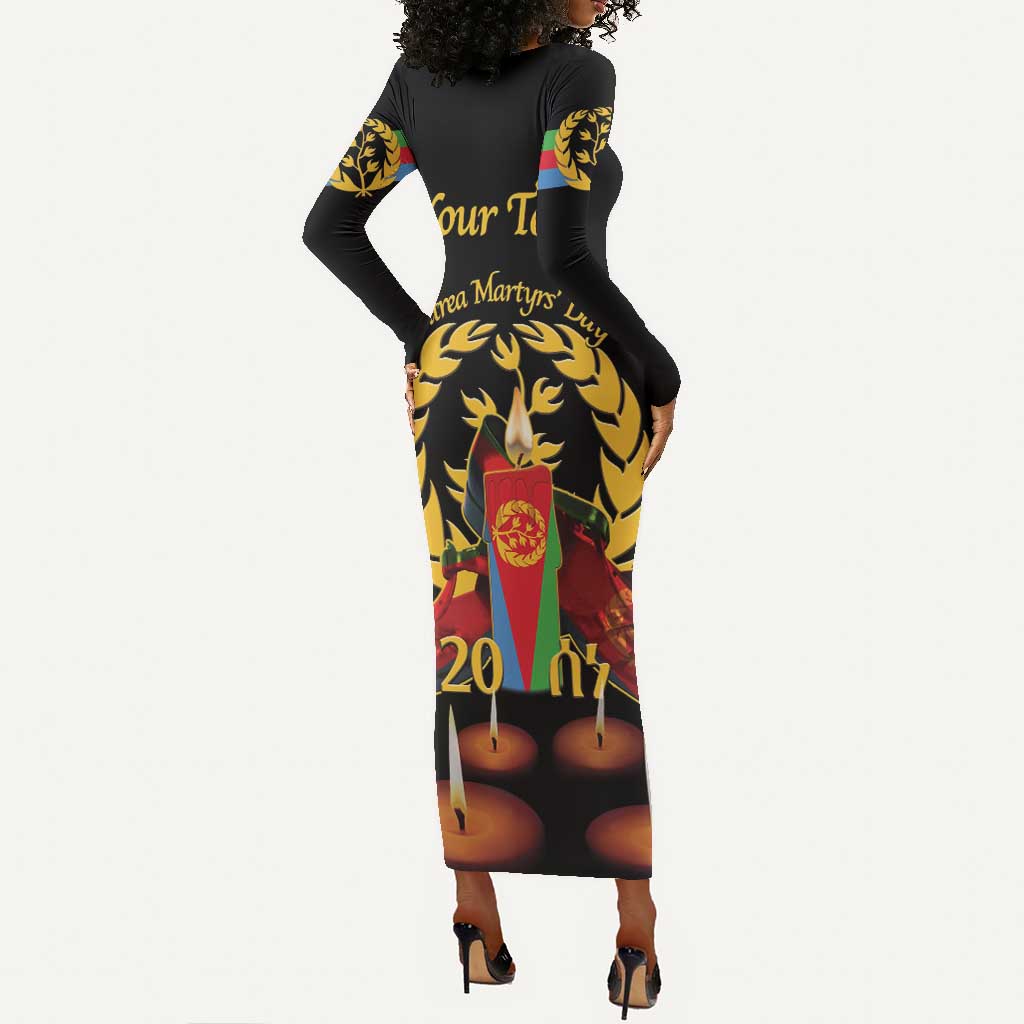 Custom Eritrea Martyrs' Day Long Sleeve Bodycon Dress 20 June Shida Shoes With Candles - Black