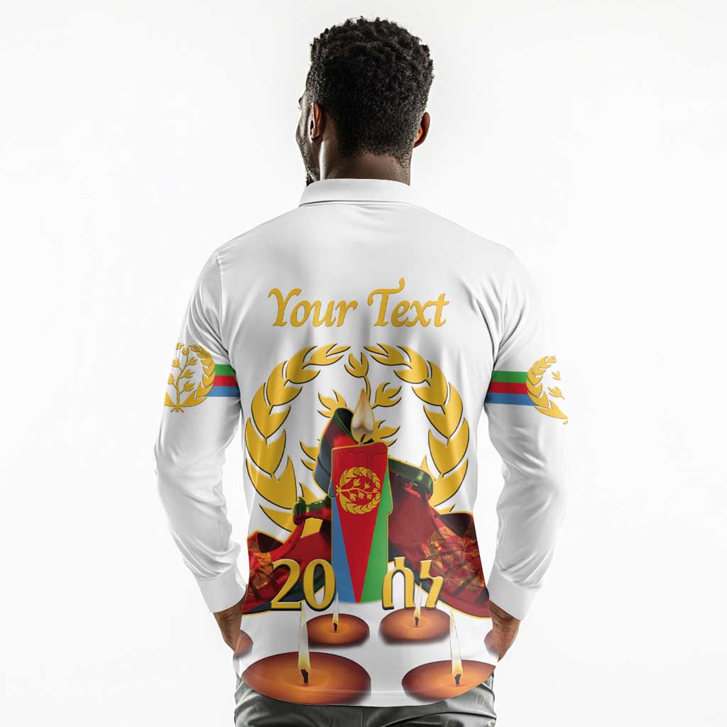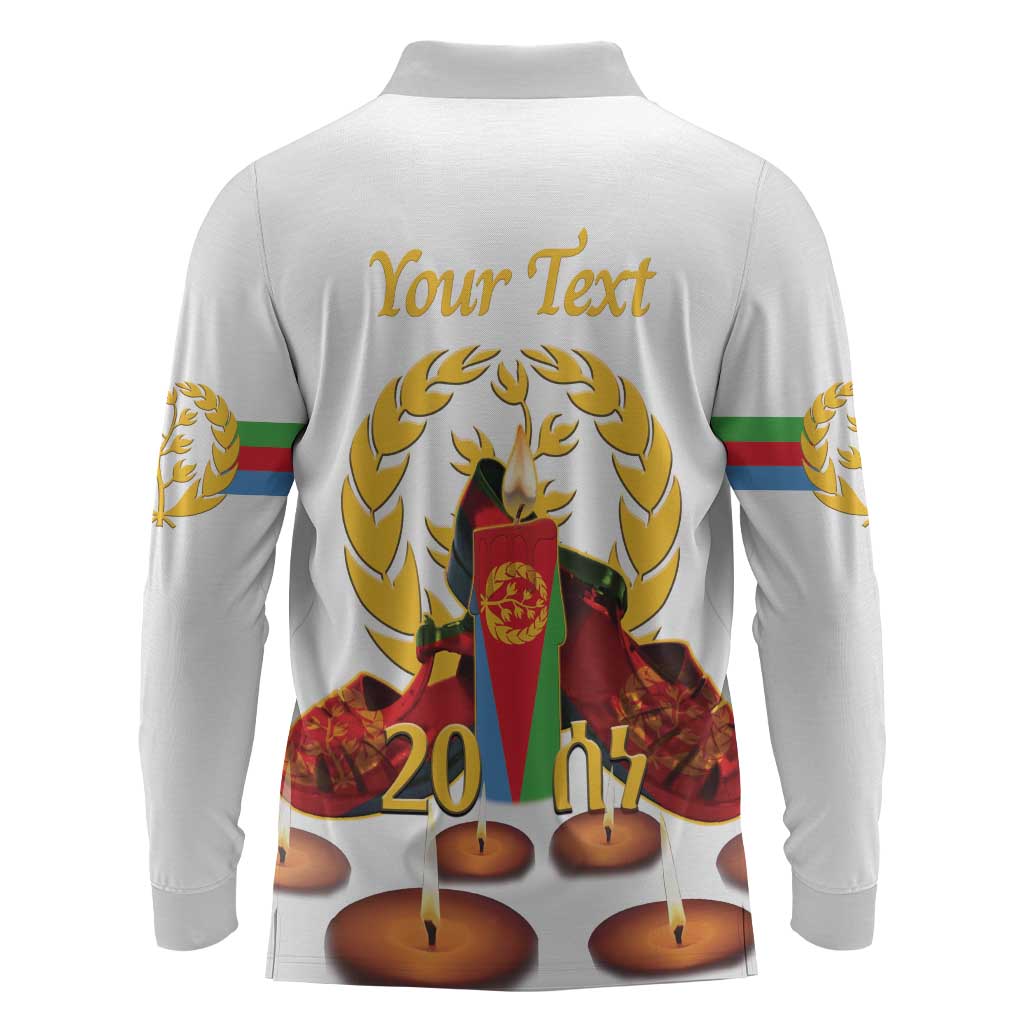 Custom Eritrea Martyrs' Day Long Sleeve Polo Shirt 20 June Shida Shoes With Candles - White