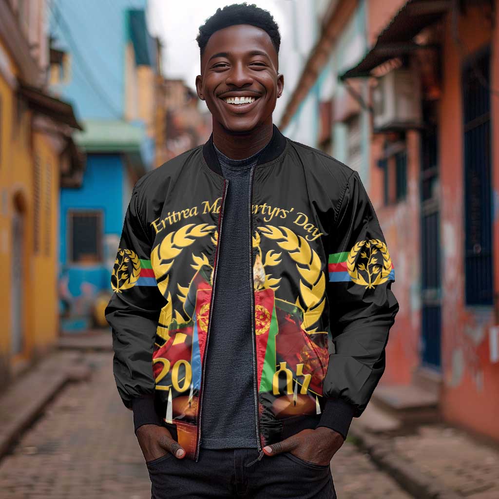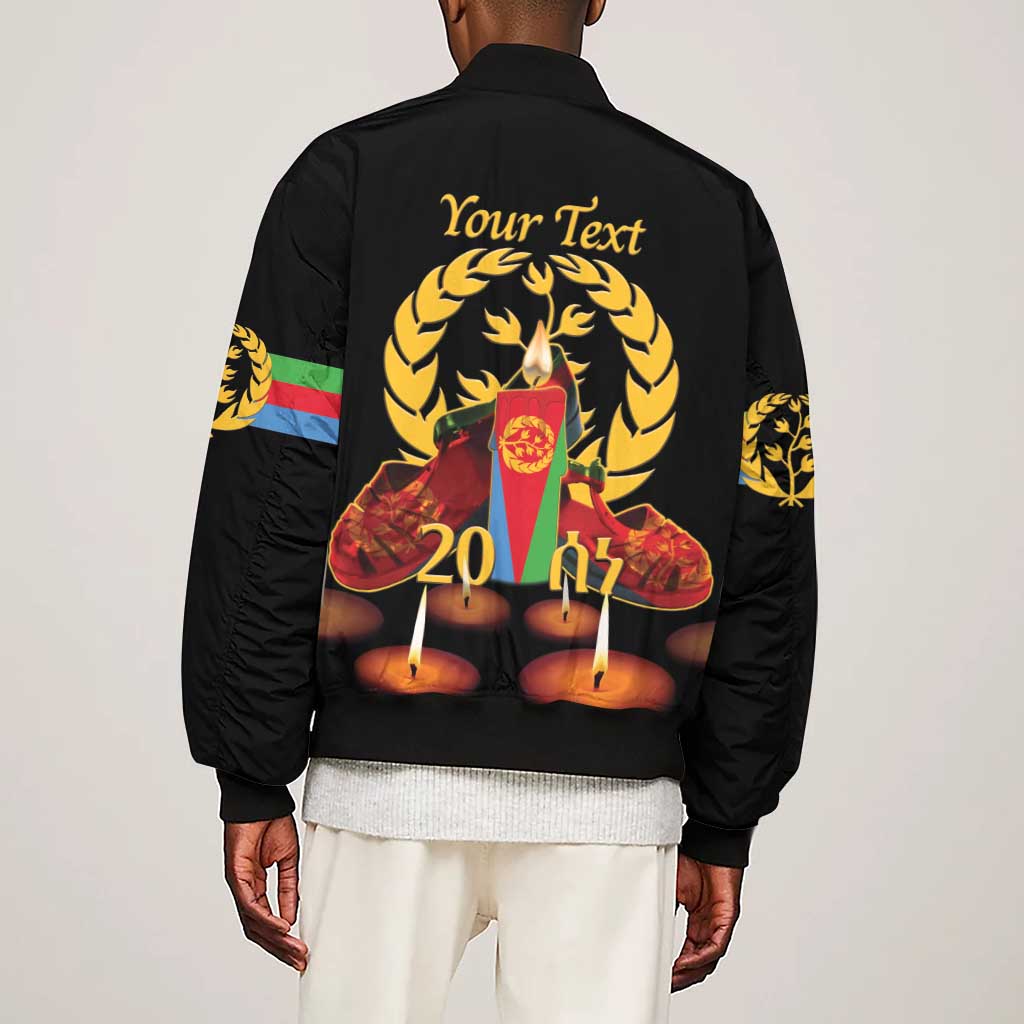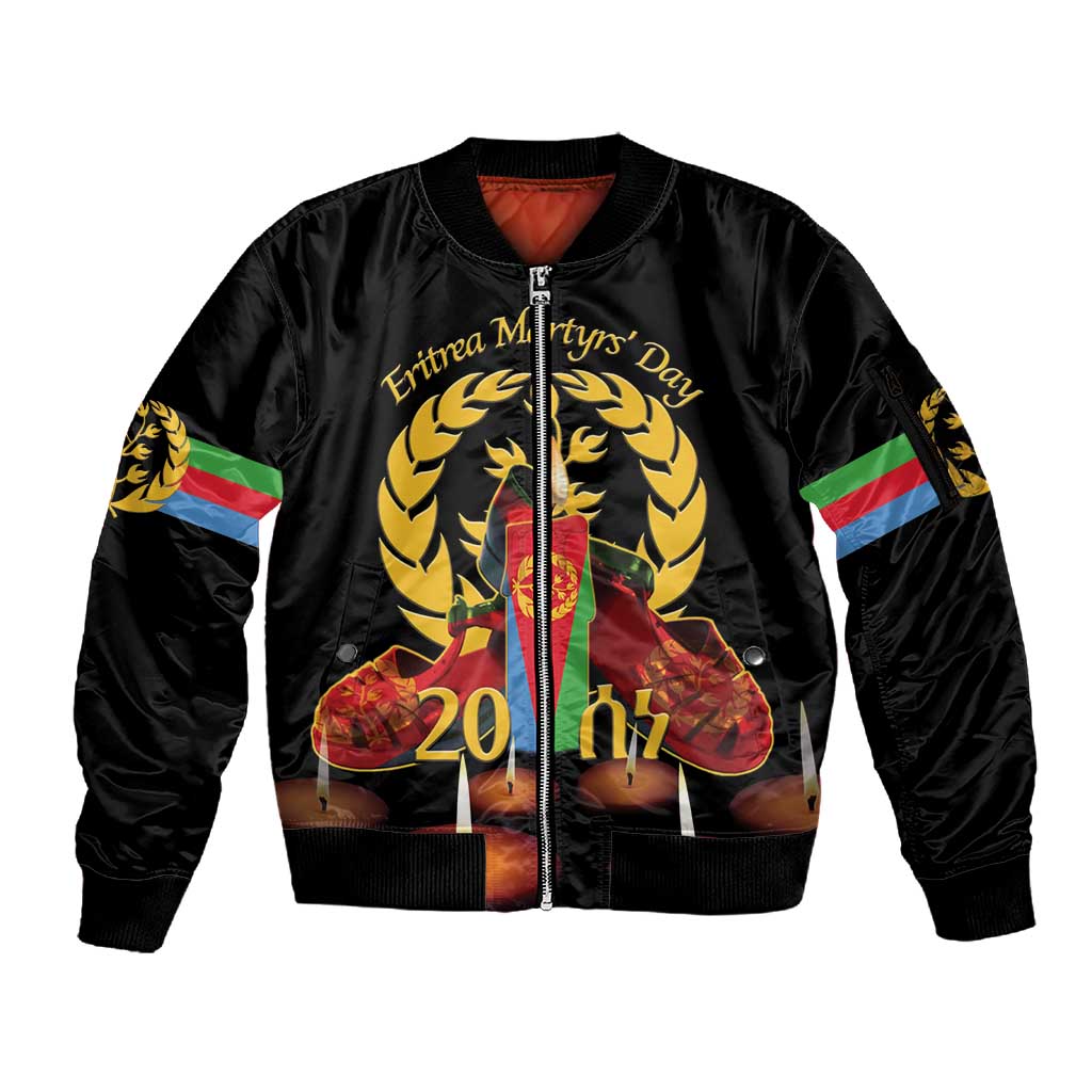 Custom Eritrea Martyrs' Day Sleeve Zip Bomber Jacket 20 June Shida Shoes With Candles - Black