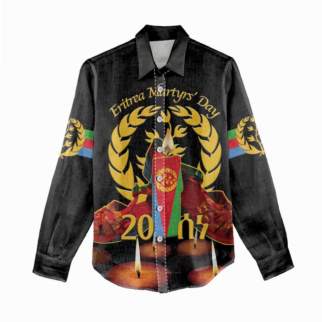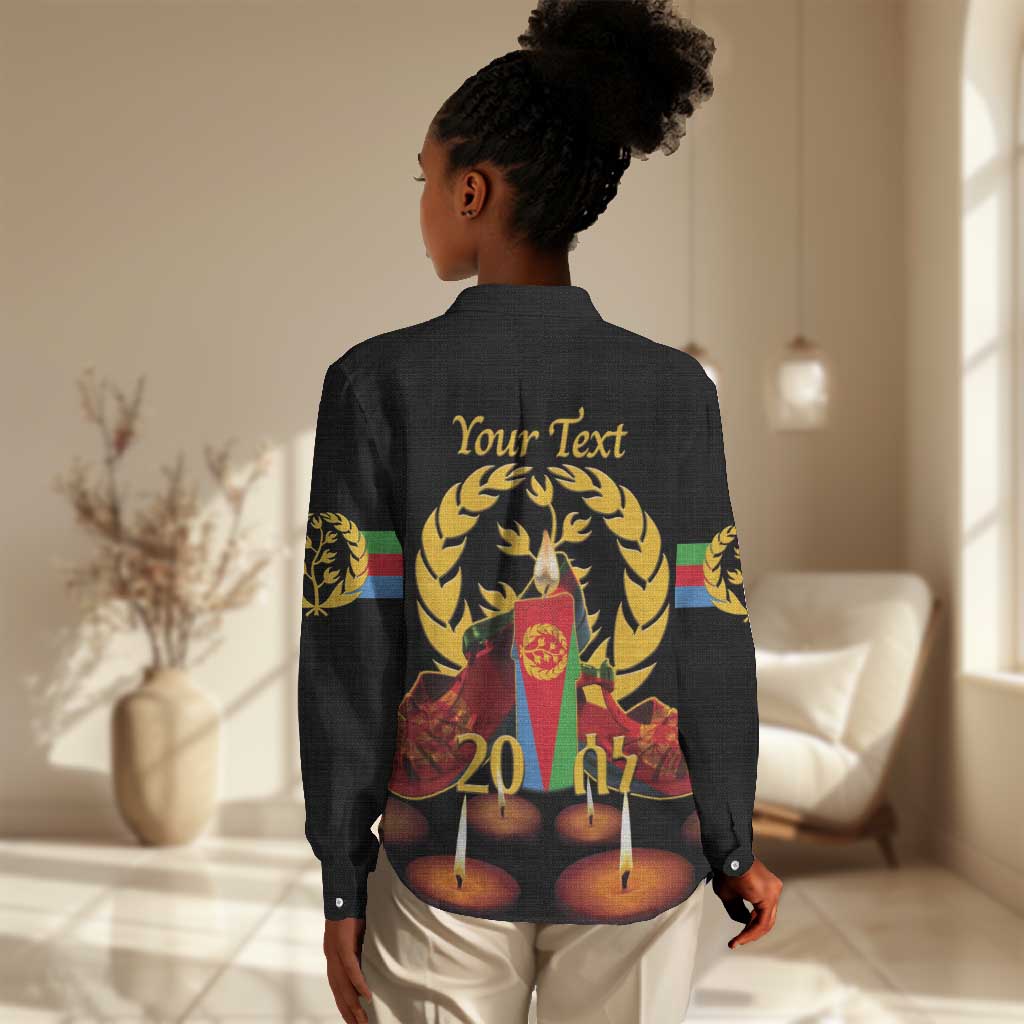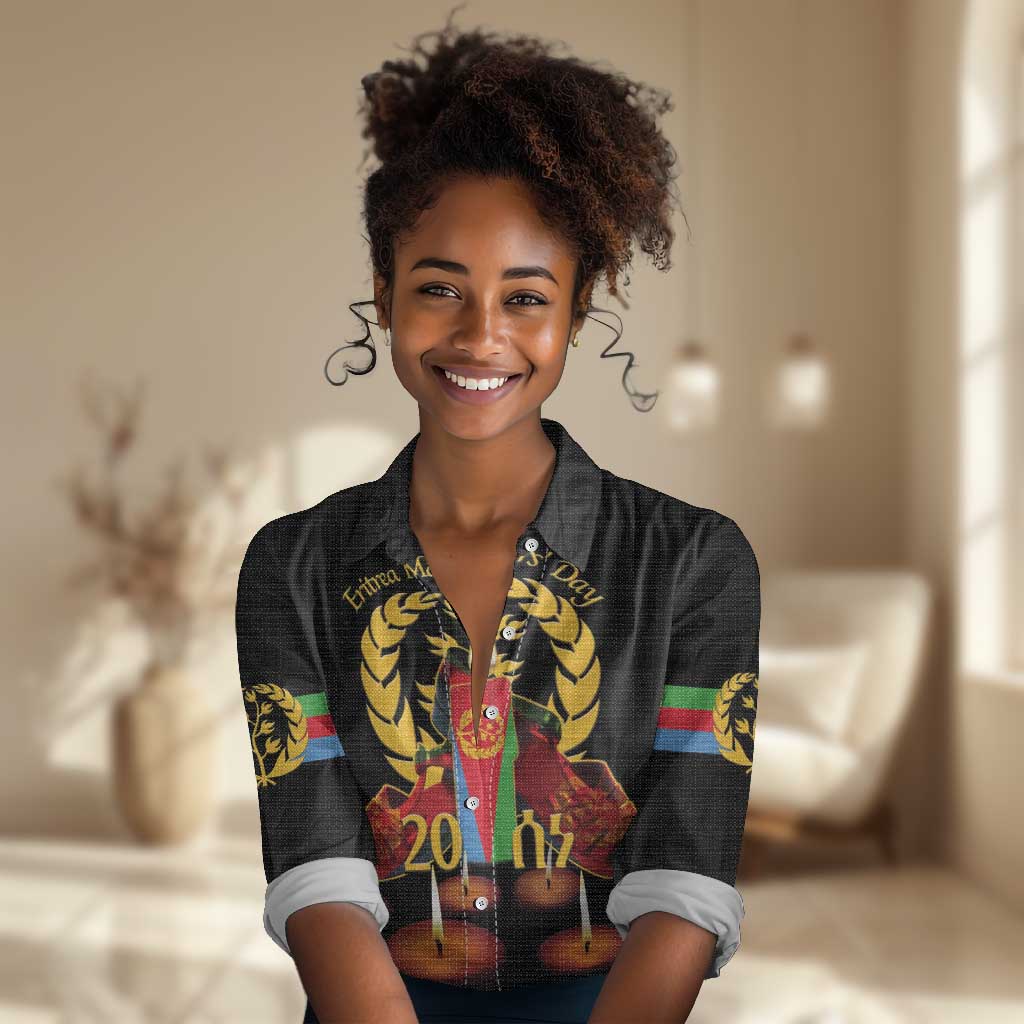 Custom Eritrea Martyrs' Day Women Casual Shirt 20 June Shida Shoes With Candles - Black