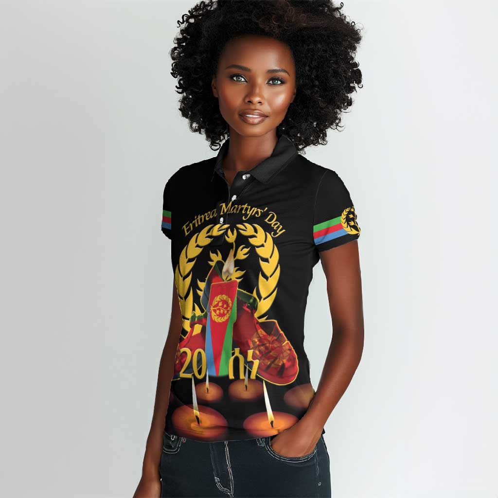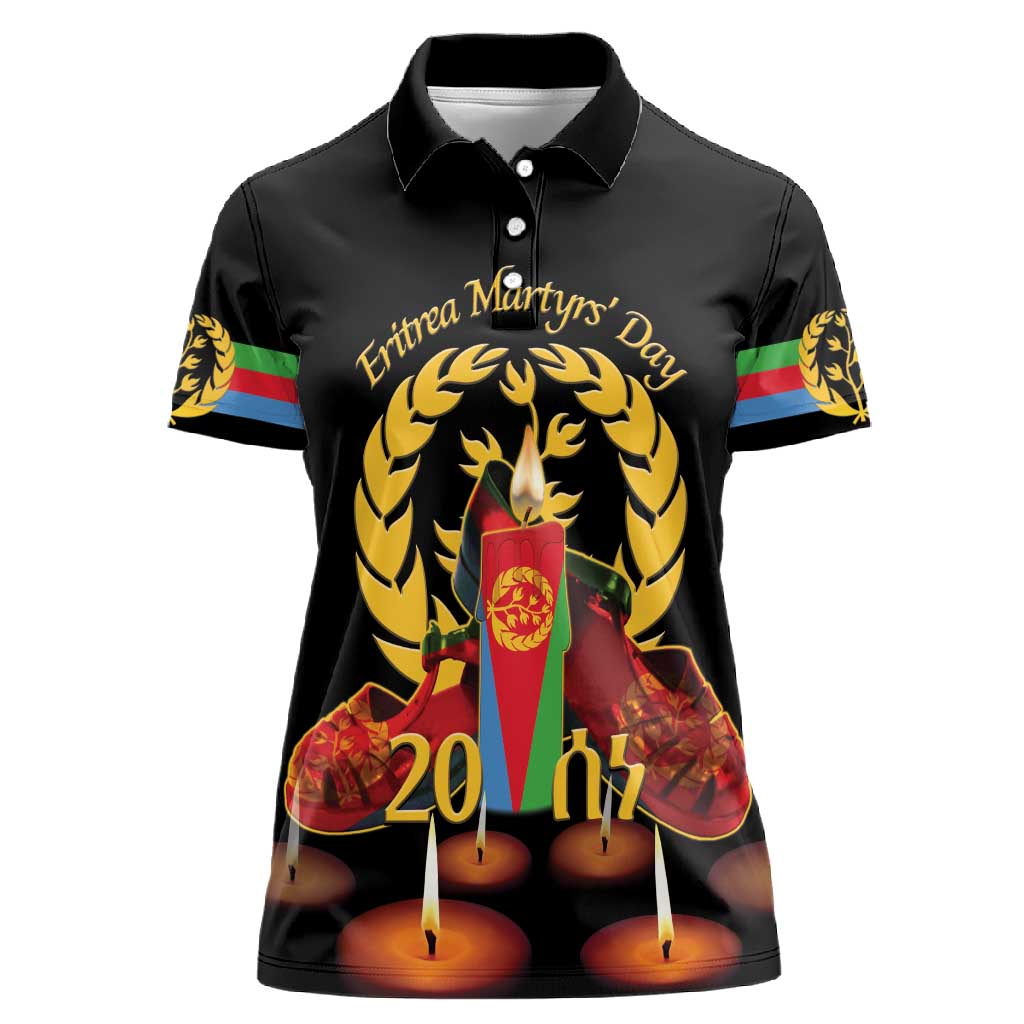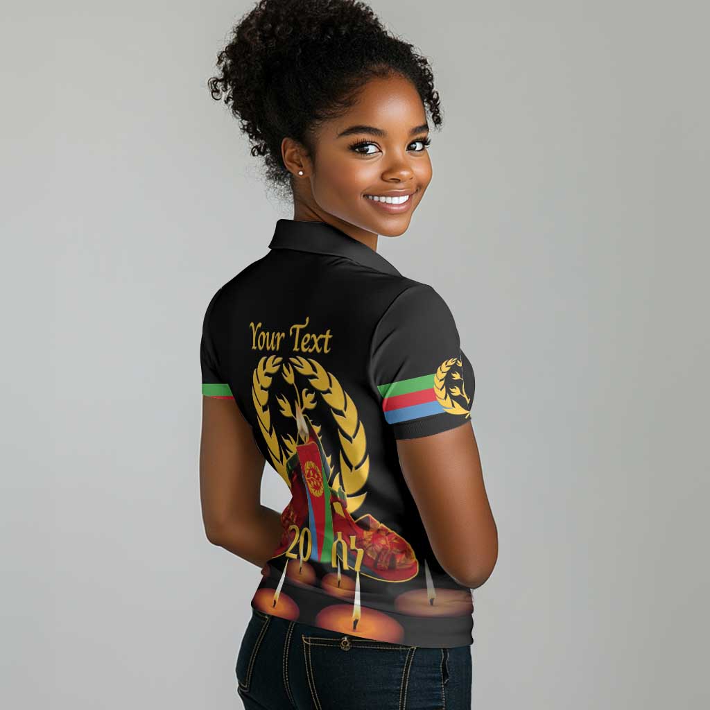 Custom Eritrea Martyrs' Day Women Polo Shirt 20 June Shida Shoes With Candles - Black