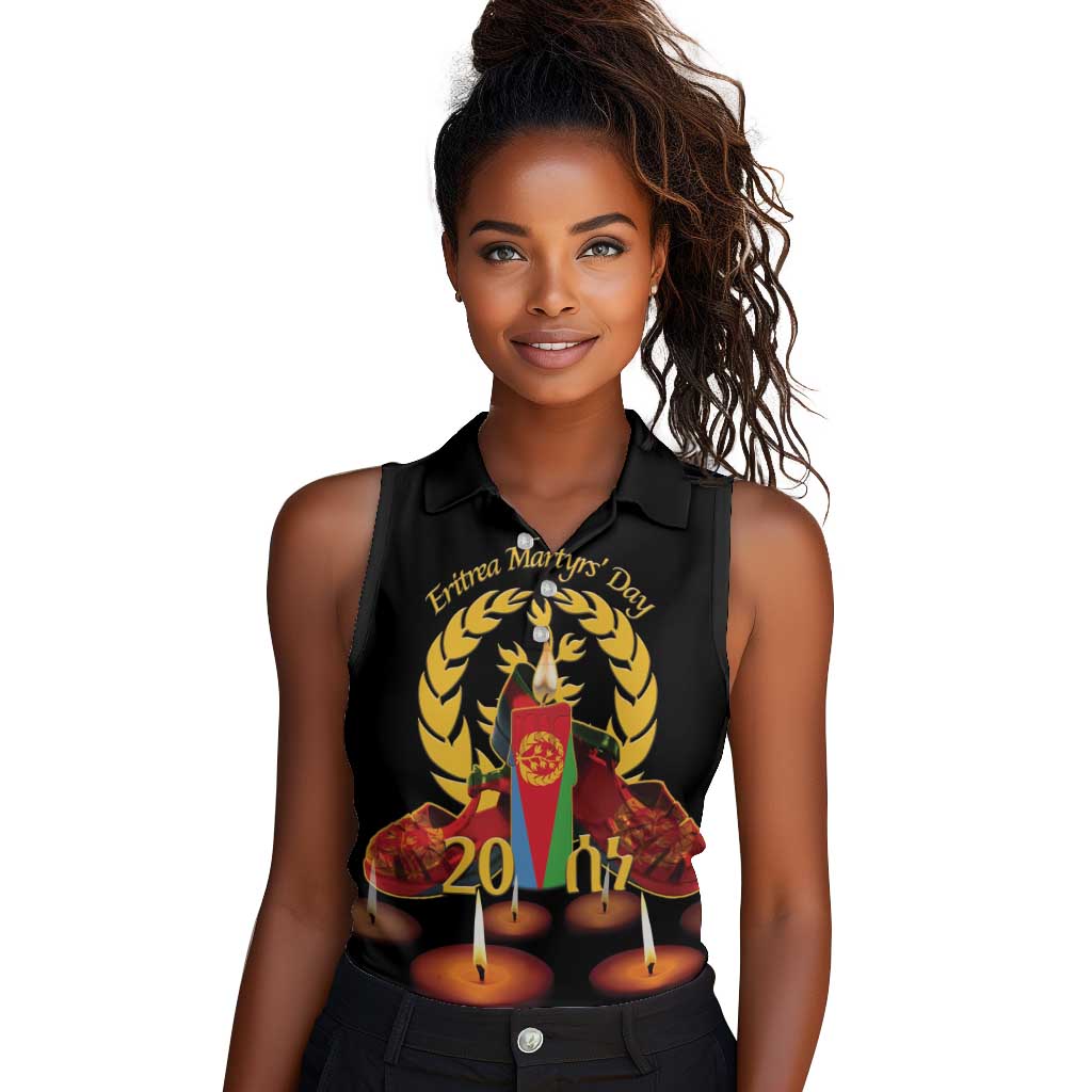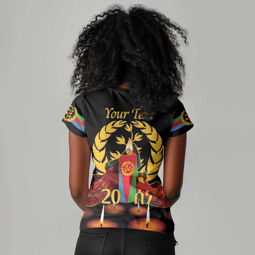 Custom Eritrea Martyrs' Day Women V-Neck T-Shirt 20 June Shida Shoes With Candles - Black