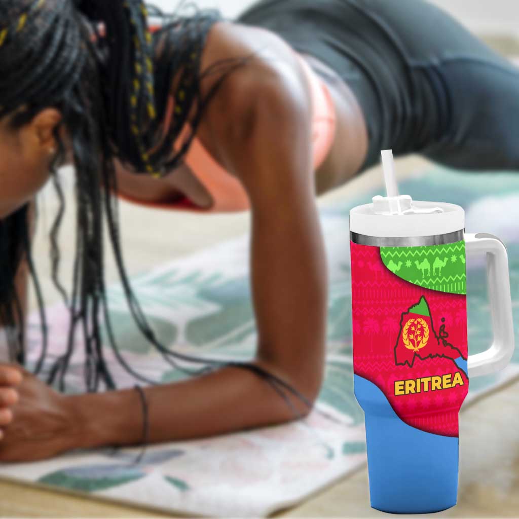 Eritrea Christmas Tumbler With Handle African Santa Gingerbread Harp National Flag Colors TS04