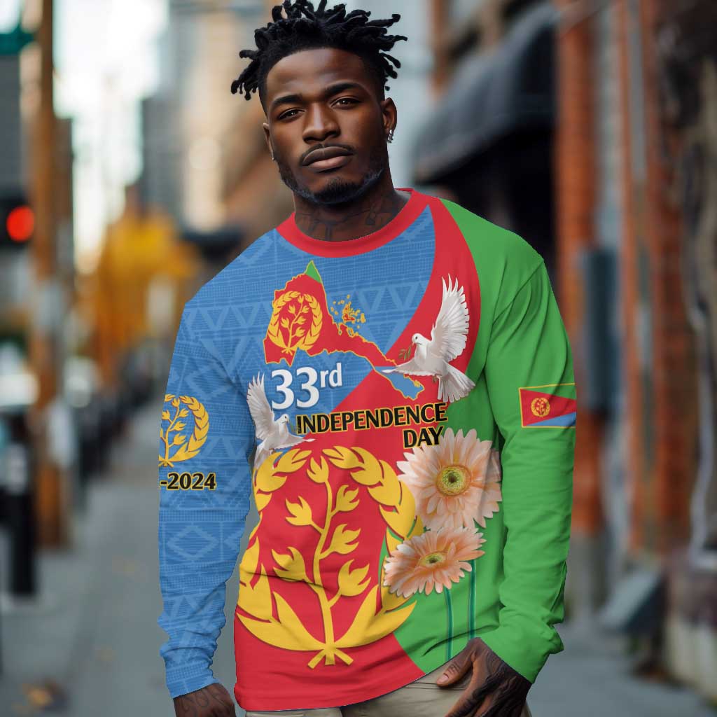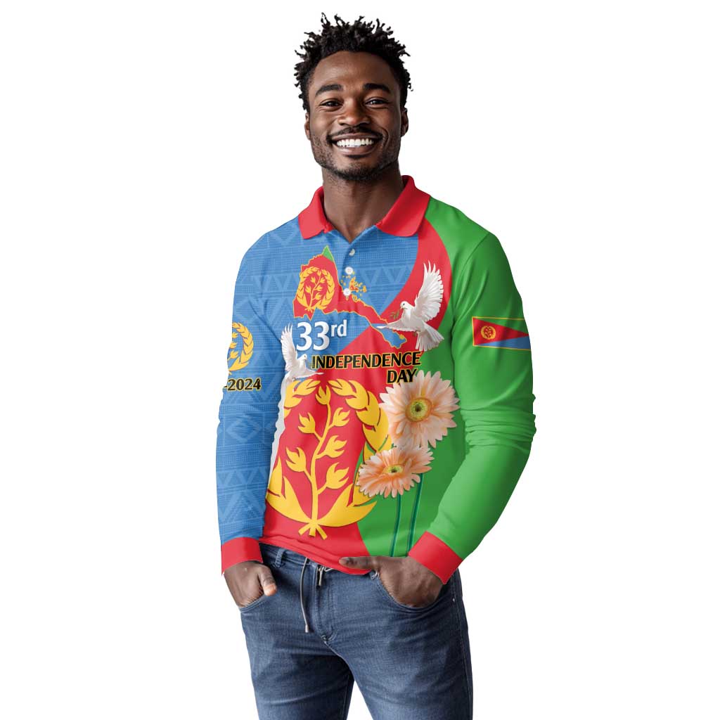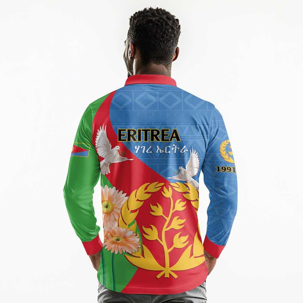Eritrea Independence Day Long Sleeve Polo Shirt Eritrean Olive Branches 33rd Anniversary