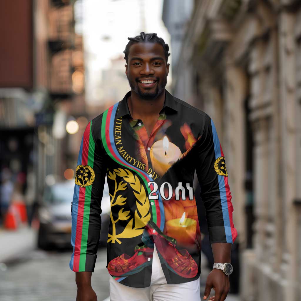 Personalized Afro-Eritrea Maelti Siwuat Long Sleeve Button Shirt Candle Vigil Glory To Our Martyrs Eritrea