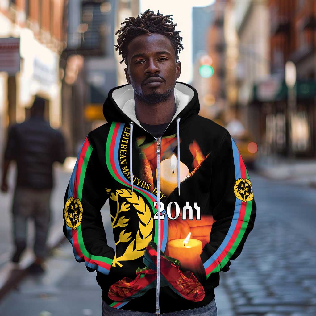 Personalized Afro-Eritrea Maelti Siwuat Zip Hoodie Candle Vigil Glory To Our Martyrs Eritrea