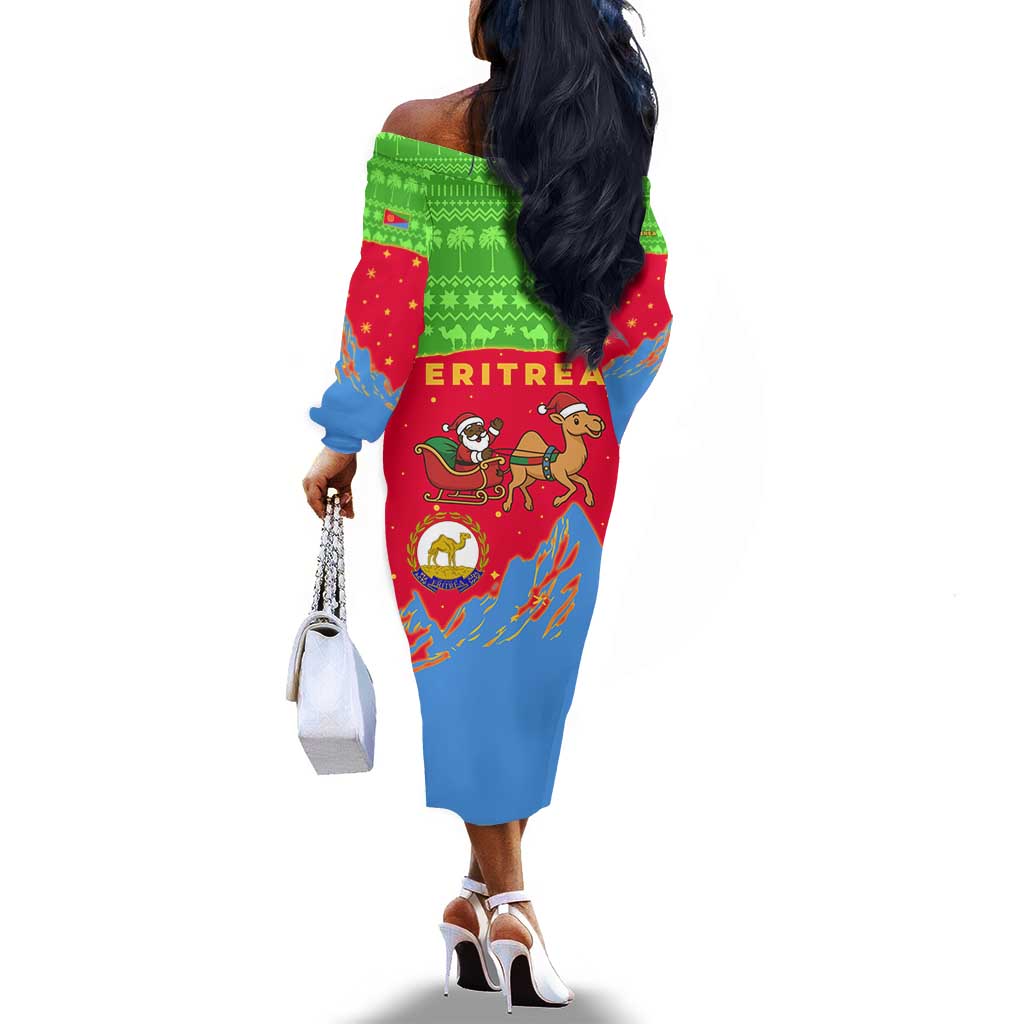 Eritrea Christmas Off The Shoulder Long Sleeve Dress Santa Claus Camel Sleigh National Emblem