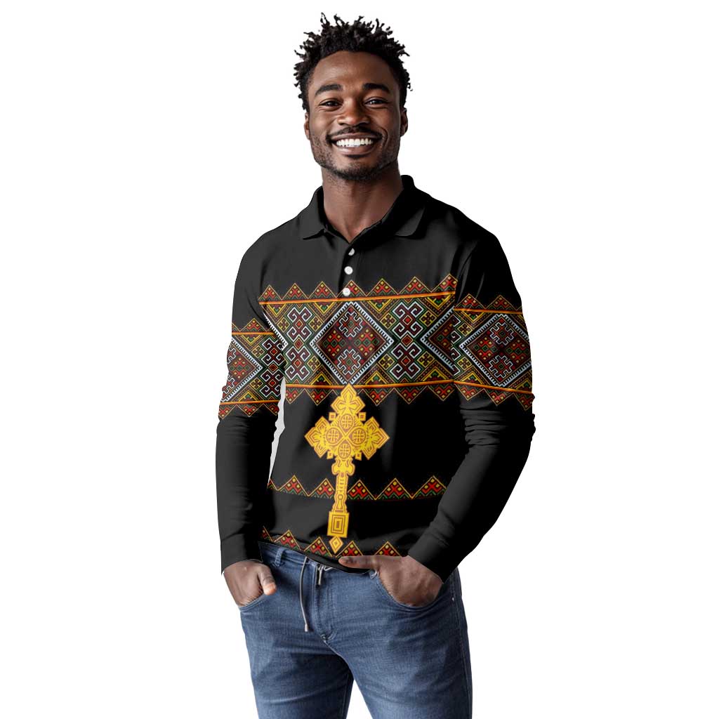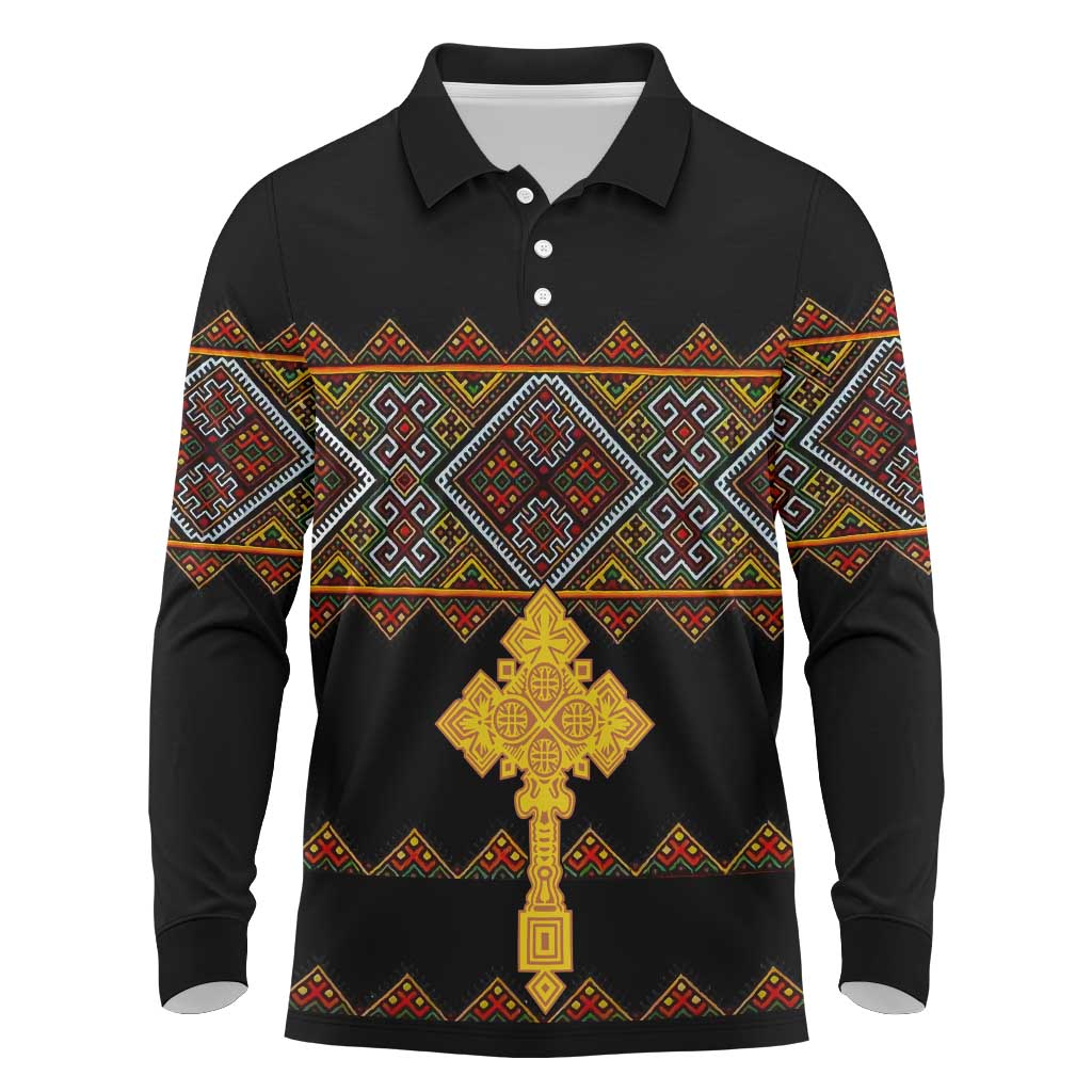Eritrea Long Sleeve Polo Shirt Tilet Mix Eritrean Cross - Black LT7