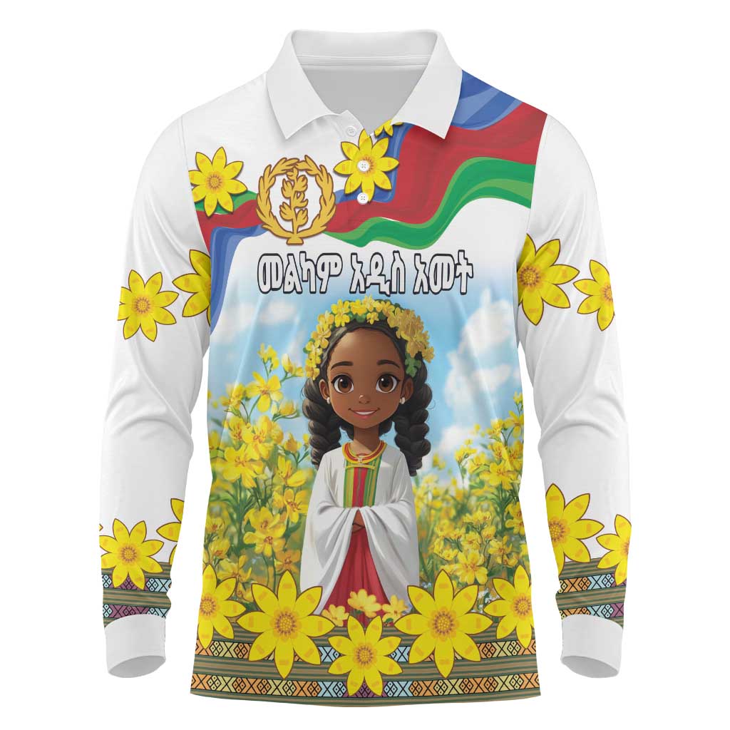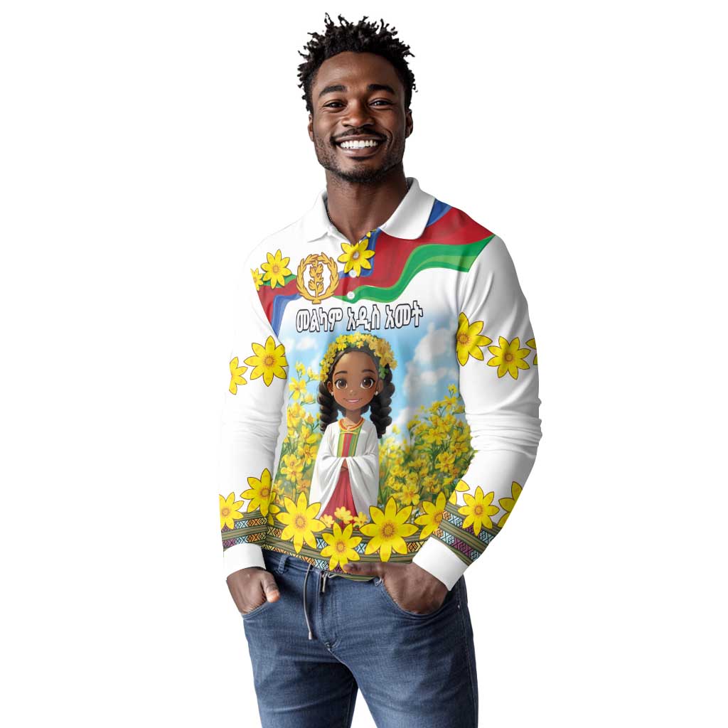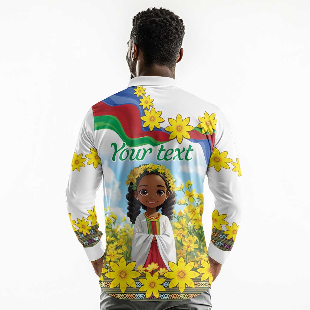 Happy Enkutatash Eritrea Personalized Long Sleeve Polo Shirt Beautiful Afro Girl Adey Abeba Flower