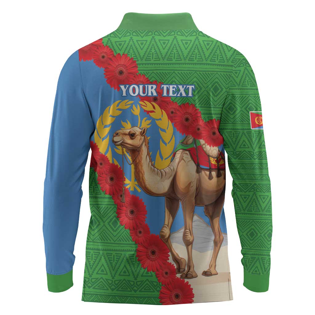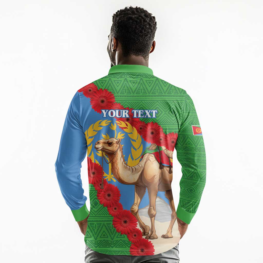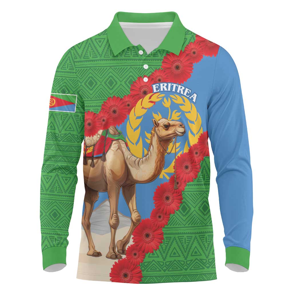 Personalised Eritrea Arabian Camel Long Sleeve Polo Shirt Gerbera Flower - Flag Color LT15