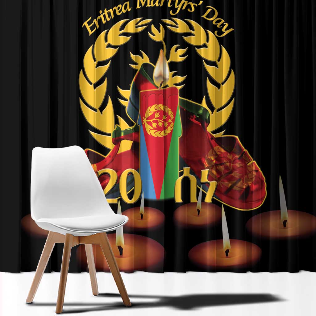 Custom Eritrea Martyrs' Day Window Curtain 20 June Shida Shoes With Candles - Black