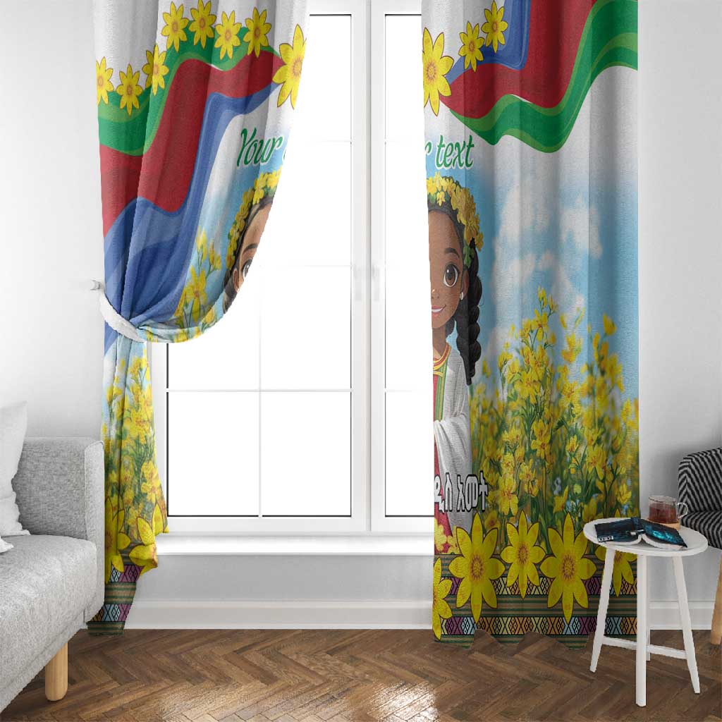 Happy Enkutatash Eritrea Personalized Window Curtain Beautiful Afro Girl Adey Abeba Flower