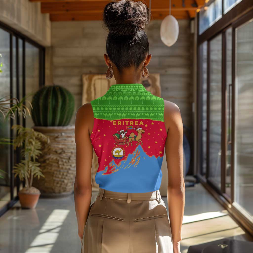 Eritrea Christmas Women Sleeveless Polo Shirt Santa Claus Camel Sleigh National Emblem