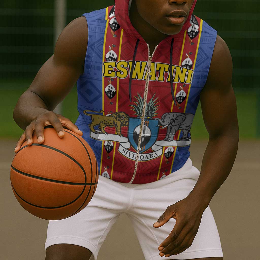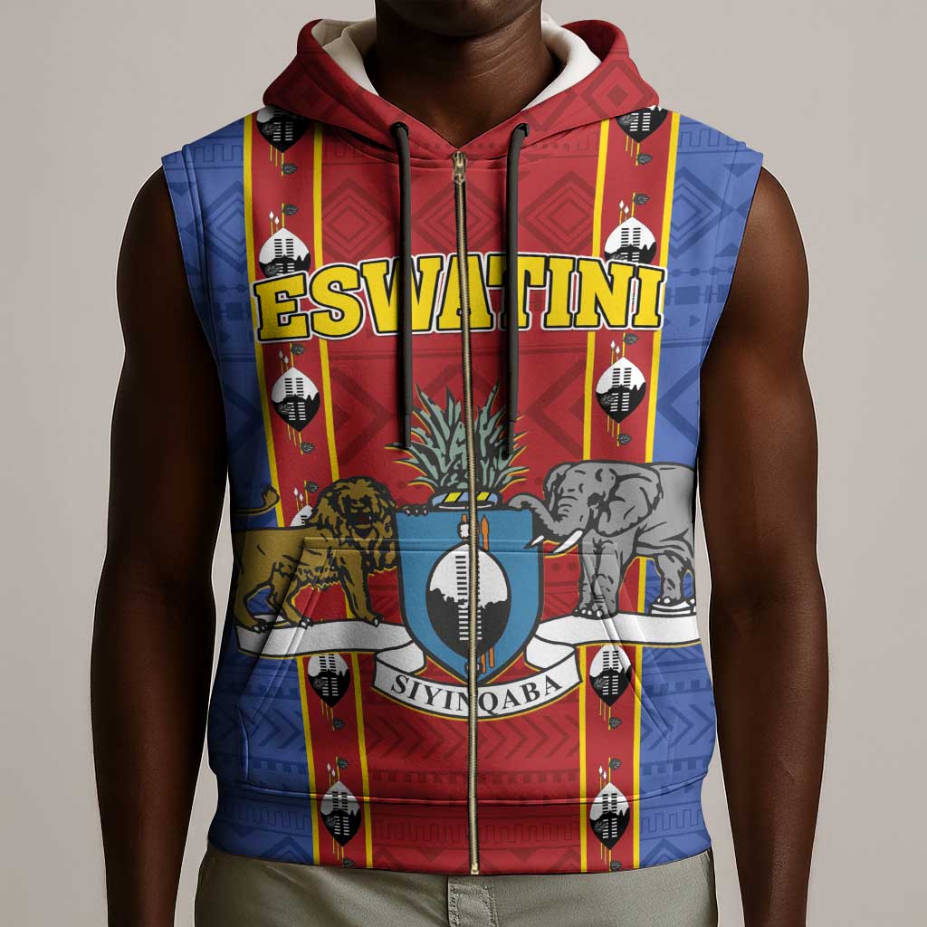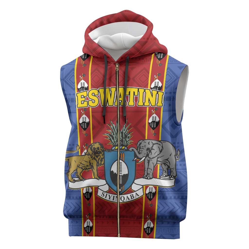 Eswatini African Pattern Sleeveless Zip Hoodie Swaziland Shield Siyinqaba