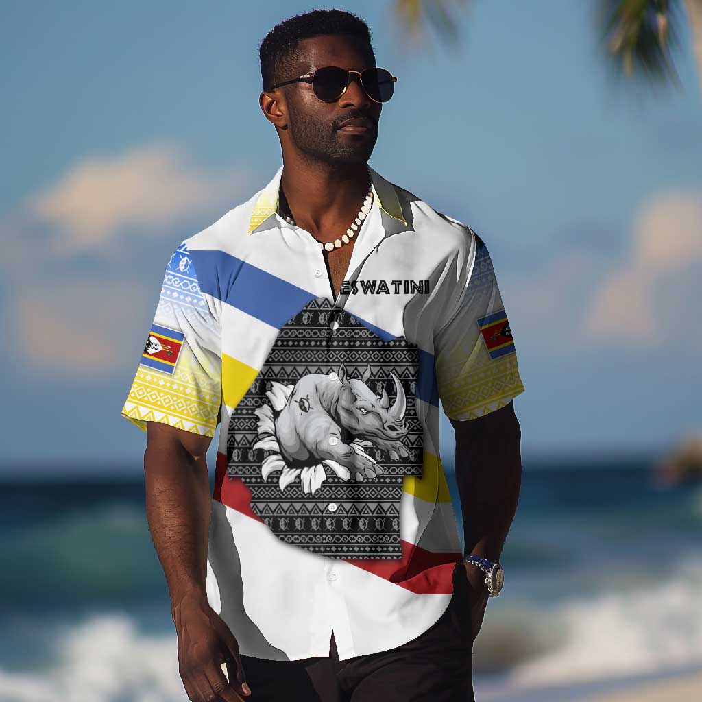 Eswatini Rhino Hawaiian Shirt Swazi Map Flag and African Traditional Patterns
