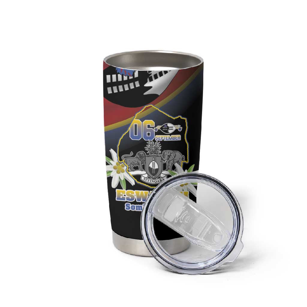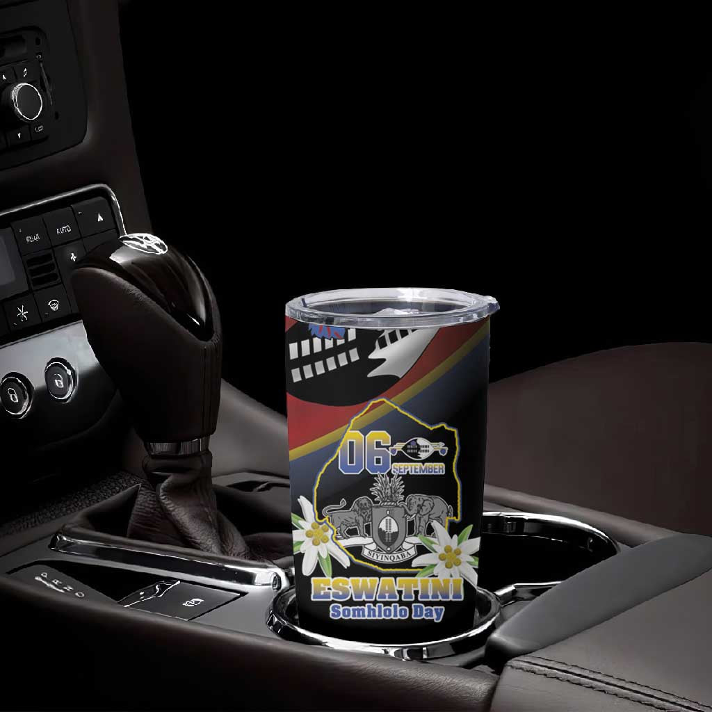 Personalized Eswatini Somhlolo Day Tumbler Cup Coat Of Arms With Map